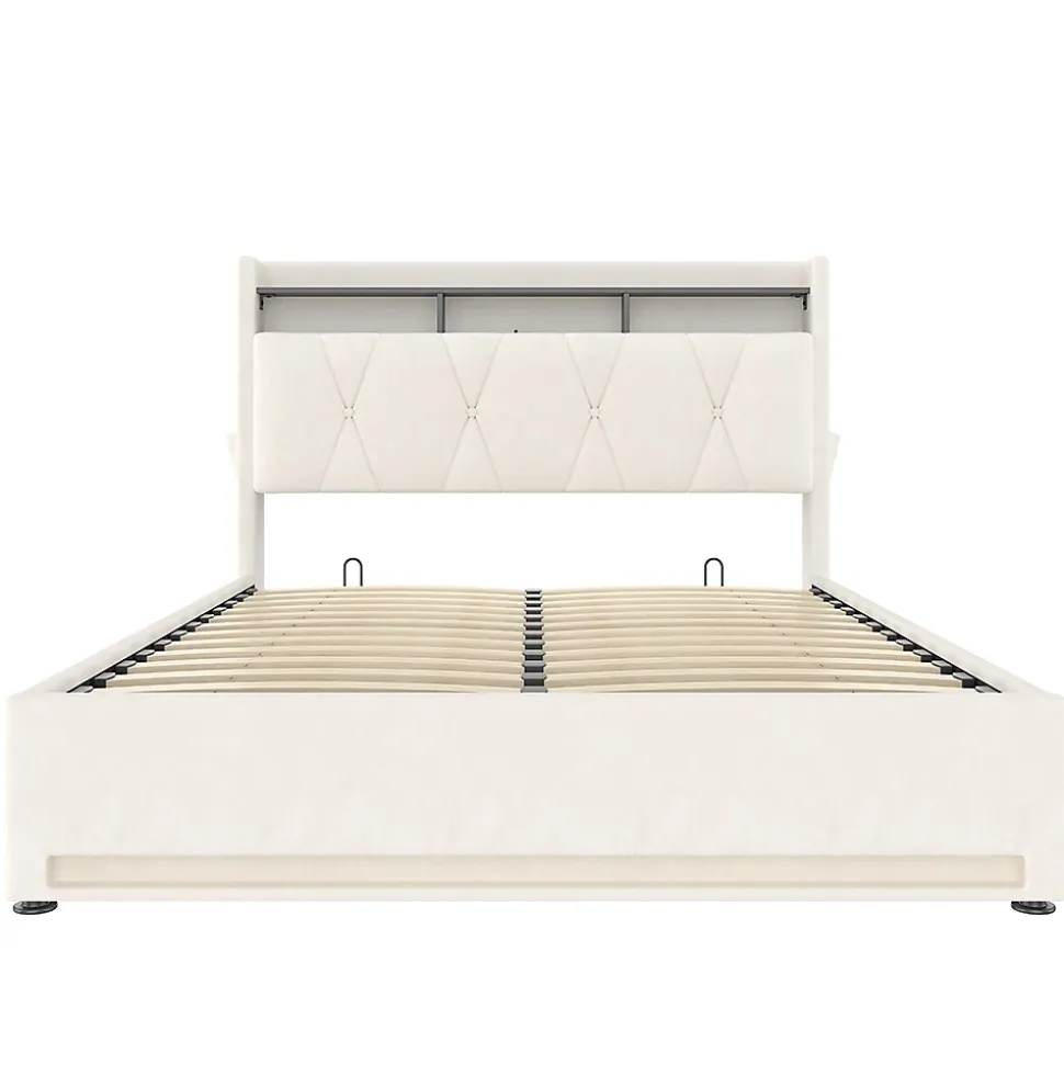 - Stabilité et confort grâce au sommier à lattes assisté par vérin à gaz. Grâce au sommier à lattes assisté par vérin à gaz, le lit s’ouvre sans effort et offre un espace de rangement supplémentaire. La structure supporte sans problème jusqu’à 300 kg. Robuste, durable et facile à utiliser, pour un confort et une sécurité maximaux.