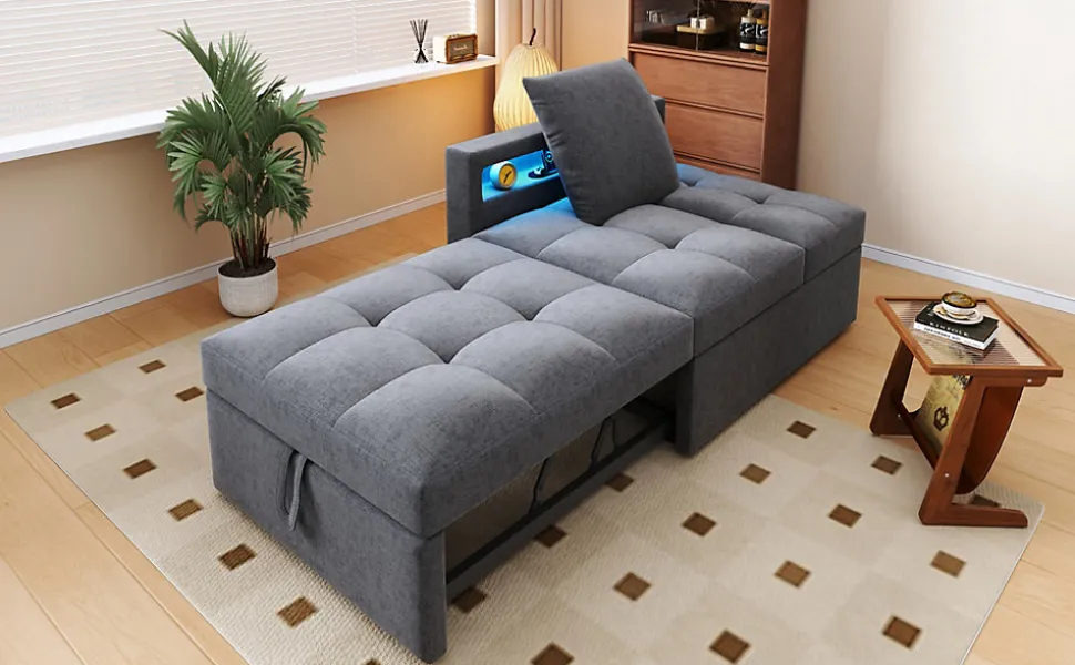 Design & styleCe canapé-lit présente une silhouette contemporaine et sobre, pensée pour s’intégrer naturellement dans un séjour, un studio ou une chambre d’appoint. Le revêtement en tissu gris apporte une touche discrète et les lignes équilibrées offrent un rendu soigné sans surcharger l’espace.Fonction convertible & couchage Mécanisme clic-clac simple et stable pour transformer le canapé en couchage 140×190 cm. Solution pratique pour accueillir des invités ou optimiser l’espace de vie, adaptée à un usage d’appoint ou régulier selon la fréquence d’utilisation. Conversion intuitive pour un passage rapide entre assise et couchage, sans outillage spécifique.Matériaux & entretienStructure combinant panneaux et éléments métalliques pour une tenue durable, rembourrage en mousse assurant un soutien homogène et revêtement textile résistant. Pour l’entretien, utiliser un chiffon doux et un aspirateur à faible puissance ; éviter les produits agressifs et le lavage en machine.Installation & emballageMontage requis, deux personnes recommandées pour manipuler et assembler les éléments en toute sécurité. Produit livré en 1 colis ; contrôler l’état à la réception et suivre la notice incluse pour un montage rapide et sans surprise.