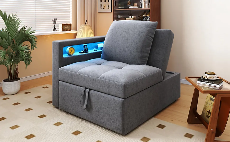 - Design contemporain aux lignes épurées, revêtement tissu gris, assise en mousse haute densité et dossier structuré offrant soutien, piètement discret pour une intégration harmonieuse dans le salon ou un espace multifonctionnel.