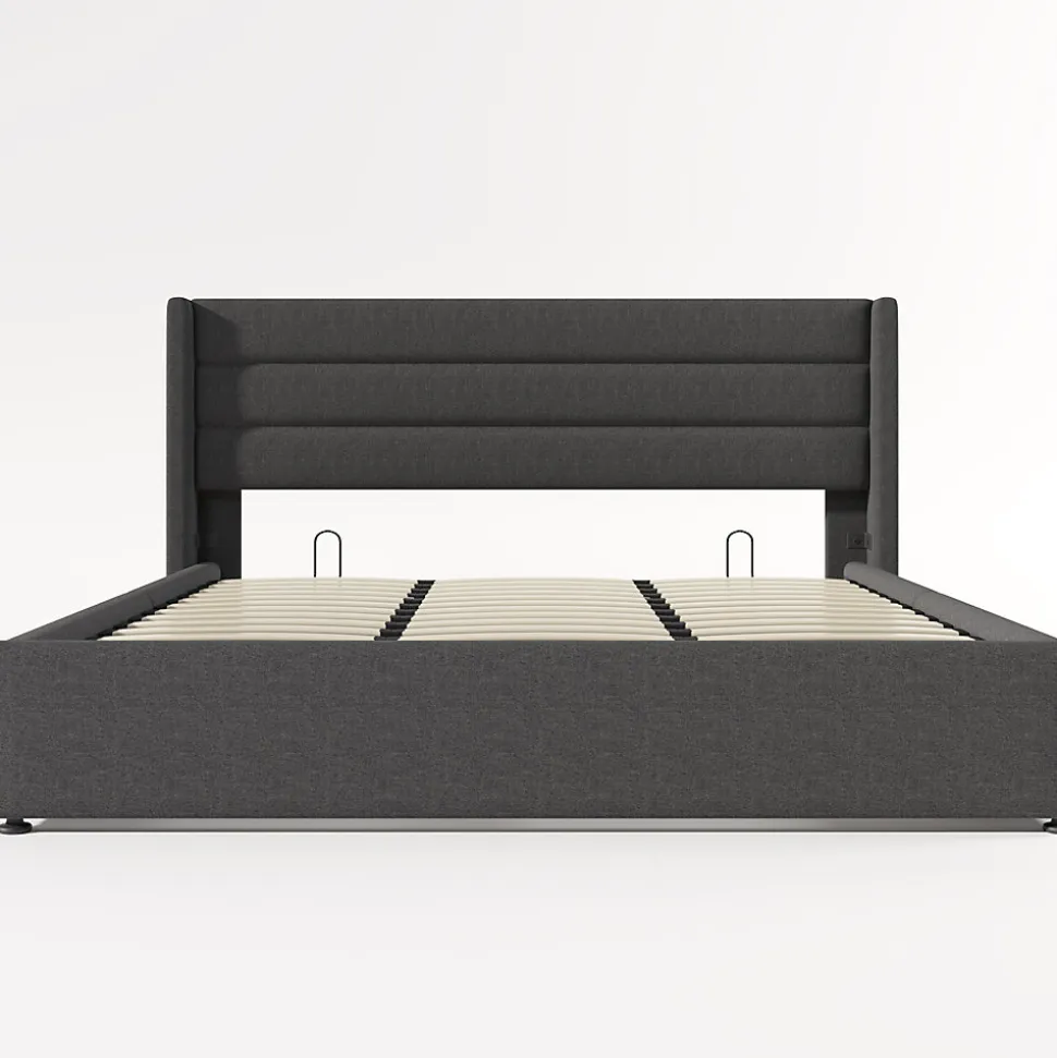 Design & styleCe canapé-lit présente une silhouette contemporaine avec une tête de lit composée de trois panneaux rembourrés et un revêtement en lin gris. Les coutures simples et la finition discrète offrent une esthétique équilibrée, adaptée à un intérieur moderne.Fonction coffre & accès Grand coffre de rangement dissimulé sous le sommier à lattes, idéal pour ranger couettes, oreillers et linge de maison. Mécanisme hydraulique assisté par vérin et sangle pour un relevage aisé et sécurisé du cadre. Solution pratique pour optimiser l’espace sans recourir à un sommier supplémentaire.Matériaux & constructionStructure étudiée pour la durabilité avec cadre métallique et sommier à lattes en bois. Revêtement en tissu lin gris et rembourrage en mousse pour un confort d’appui au niveau de la tête. Renforts et pieds supplémentaires assurent la stabilité.Dimensions & capacitéDimensions totales : 214,5 x 193,5 x 114 cm (L x P x H). Couchage compatible : 180×200 cm (matelas non fourni). Charge maximale recommandée : 226 kg. Distance du pied à la tête : 25 cm environ.Installation & emballageMontage requis, deux personnes recommandées pour l’assemblage et la mise en place. Produit livré en 2 colis pouvant arriver séparément; vérifier l’intégralité des pièces à la réception. Aucun sommier boxspring requis.
