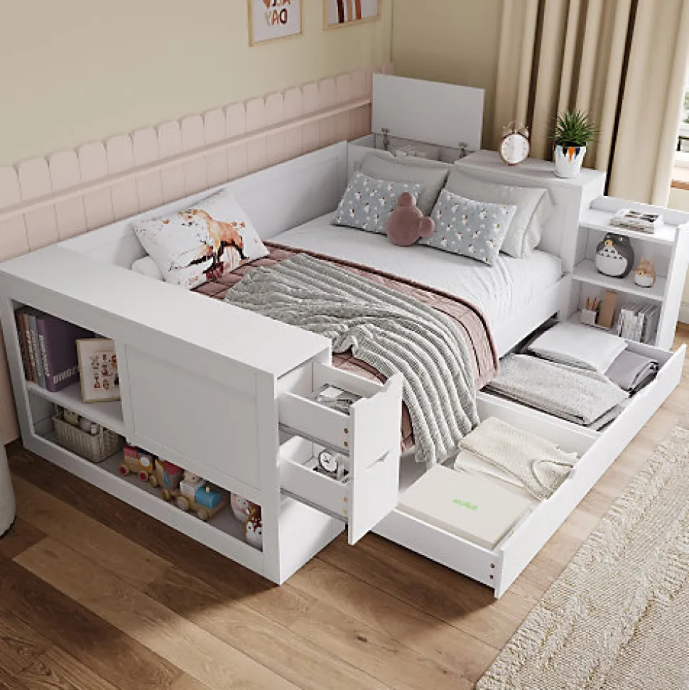 •【Disponible en plusieurs tailles】Deux tailles, 90x200cm et 140 x 200 cm, sont disponibles pour répondre aux besoins variés des chambres d’enfants, des petits appartements ou des pièces multifonctionnelles, et créer facilement un espace de couchage confortable.•【Lit multifonction】Combinant les fonctions d’un canapé-lit et d’un lit bébé, il peut servir de canapé confortable ou de coin lecture le jour et de lit confortable la nuit. Lit multifonction, compact et pratique.•【Espace de rangement spacieuxÉquipé d’un tiroir extra-large de 58 cm de profondeur, d’un coffre de rangement pratique et d’une table de chevet à tirette, il offre de nombreuses possibilités de rangement pour les jouets, les livres, le linge de lit et autres objets.•【Simple et polyvalent】Sa couleur blanche fraîche apporte une sensation de simplicité et d’espace, et s’intègre facilement dans un style moderne, nordique ou une chambre d’enfant pour créer une atmosphère lumineuse et ordonnée.•【Conception sûre】Fabriquée en bois sélectionné de haute qualité, la structure est robuste et durable, et les coins arrondis sont plus sûrs pour protéger les enfants à chaque instant de l’utilisation quotidienne.•【Facile à assembler】Des instructions détaillées et des pièces complètes sont disponibles pour vous aider à réaliser l’assemblage rapidement.