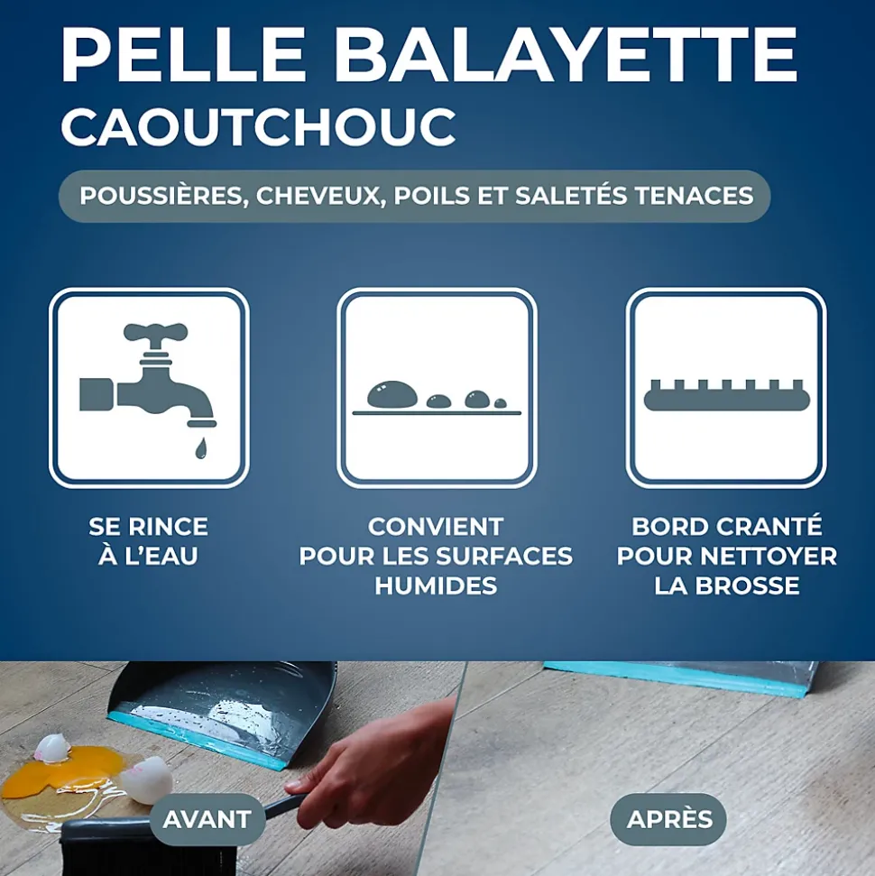 Combiné pelle-balayette caoutchouc Starwax gris et bleu l.22,5 x H.22 x P.9cm