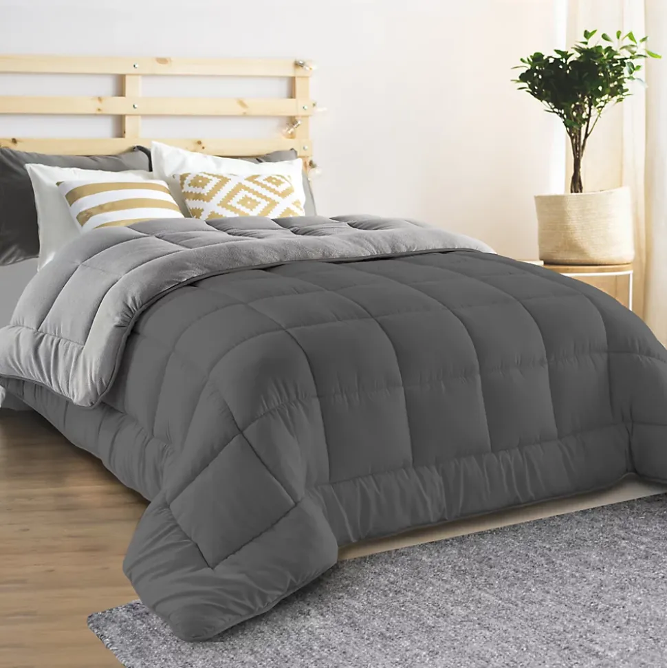 Profitez d’un sommeil réparateur avec notre couette polaire biface ZOE 220×240 cm à la fois douce et chaude et soyez ainsi détendu et reposé tout au long de l’année. A la fois douce grâce à son côté en tissu 75 gr/m² microfibres, et cocooning grâce à sa face polaire 100% polyester 160gr/m² cette couette a tous les atouts pour vous procurer des nuits paisibles et confortables. Dotée d’un garnissage 400 gr/m² en fibres creuses moelleuses, la couette ZOE se compose également d’une finition en piquage façon carreaux garantissant une très bonne répartition de la chaleur sur l’ensemble de votre couette. De quoi vous garder bien au chaud pour la période hivernale !Craquez pour cette jolie couette gris clair et gris foncé qui deviendra votre nouvel indispensable de l’hiver ! Dimensions de la couette polaire biface ZOE 220×240 CMDimensions de la couette : Longueur 220 cm x largeur 240 cmColoris : gris clair et gris foncéFace tissu gris foncé 100 % polyester 75 gr/m² en microfibresFace polaire gris clair 100 % polyester 160 gr/m²Rembourrage 400 gr/m² fibres creusesTraitement anti-acarien, antibactérien et anti-feuCe modèle de couette polaire biface ZOE existe également en d’autres dimensions ou coloris : – Couette 220×240 CM polaire biface gris et crème 400 gr- Couette 200×200 CM polaire biface gris et crème 400 grRetrouvez également tous nos modèles de couettes, oreillers et surmatelas sur notre boutique en ligne !