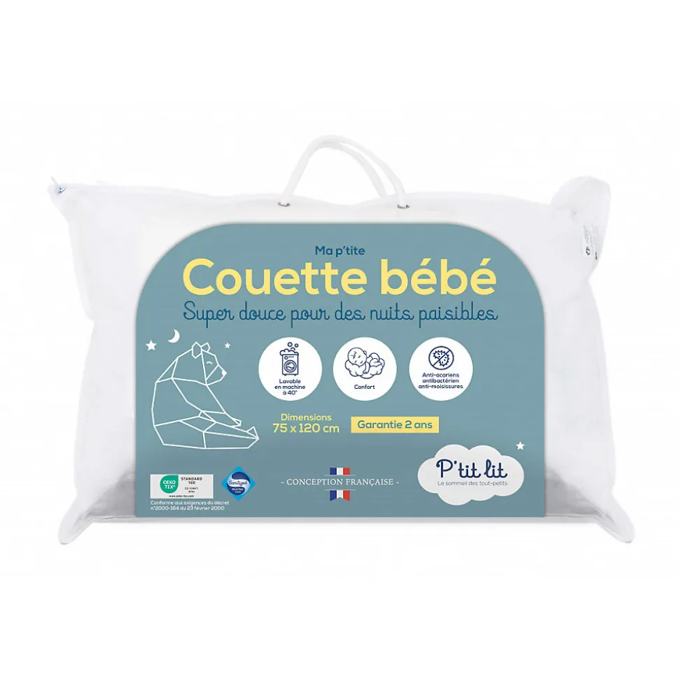Voici la couette P’tit lit – Bébé | Enfant – le doudou ultime pour les nuits paisibles de votre petit. Fabriquée avec une enveloppe 100 % microfibre, elle est aussi douce qu’une pêche et offre un confort optimal. Dites adieu aux acariens, aux bac