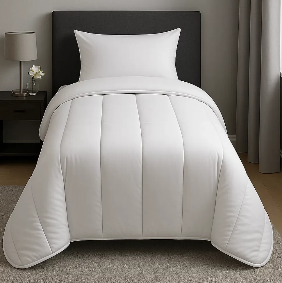 Couette blancheDimension : 140x200Garnissage : 550 grs/m² de fibre creuse siliconée « Sensifibre »Tissu Microfibre Coins ronds – Double piquage – Biais polycoton couleur aléatoireVendue dans sa housse de rangementLavable à 40°Pas de séchage tambourPas de repassagePas de nettoyage à secFabrication française