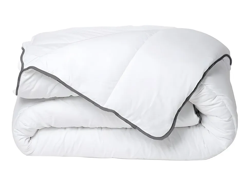 - Couette Câline toucher soie – 250 g/m² – Blanc biais gris – 220 x 240 cm – Dites oui au confort toute l’année grâce à la couette BYESA ! Couette tempérée