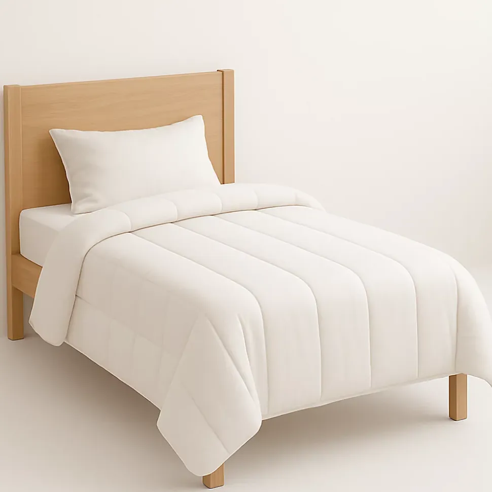 Couette blanche – 1 personne (140×200)Garnissage : 350 grs par m² de fibre creuse siliconnée « cleanifibre »Tissu Microfibre 77% + Coton 23%Coins ronds – Double piquage – Biais Polycoton CouleurLavable à 95 °CPas de séchage tambourPas de repassagePas de nettoyage à secFabrication française