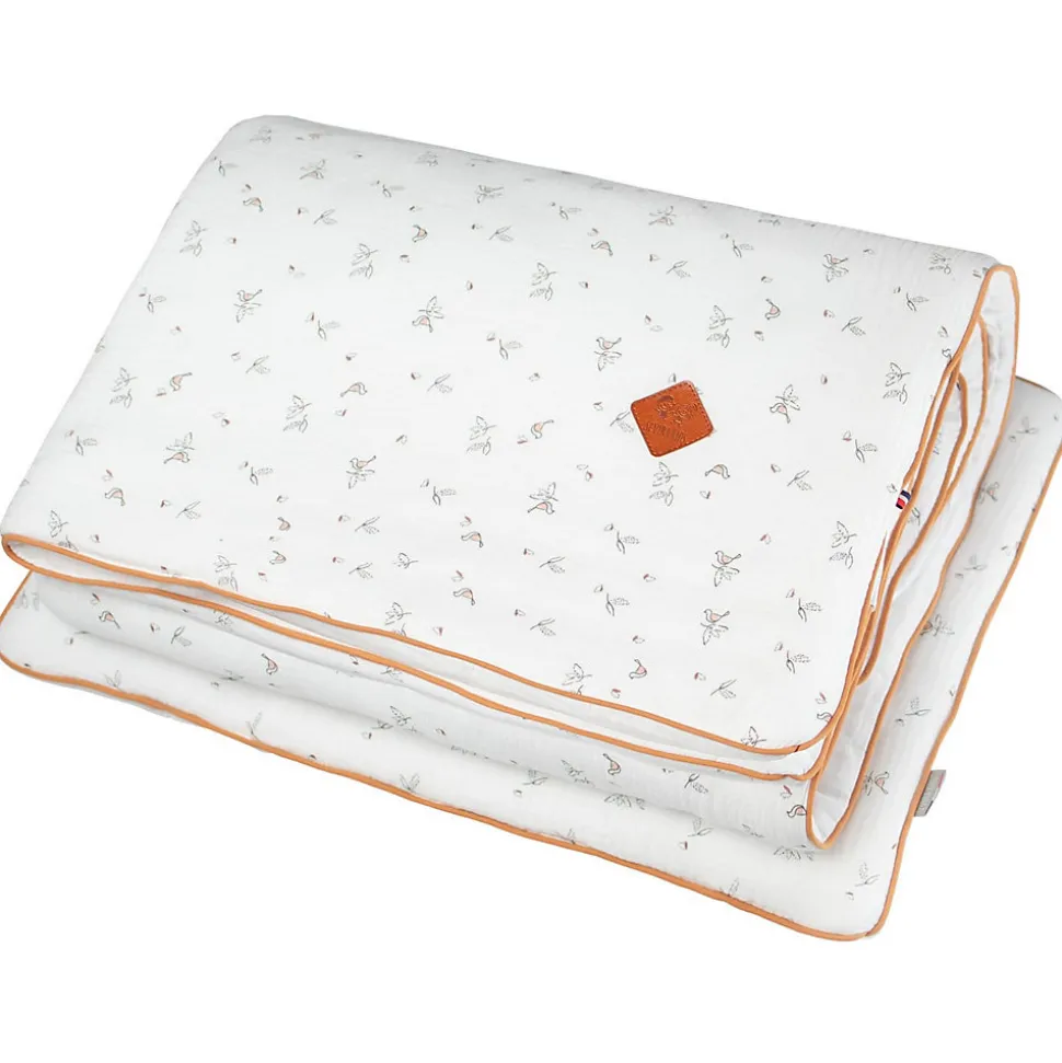 - Innovation Made in France : Cet ensemble de couchage, composé d’une couette et d’un oreiller en gaze de coton, est conçu et fabriqué entièrement en France, dans les ateliers de Sevira Kids à Compiègne.