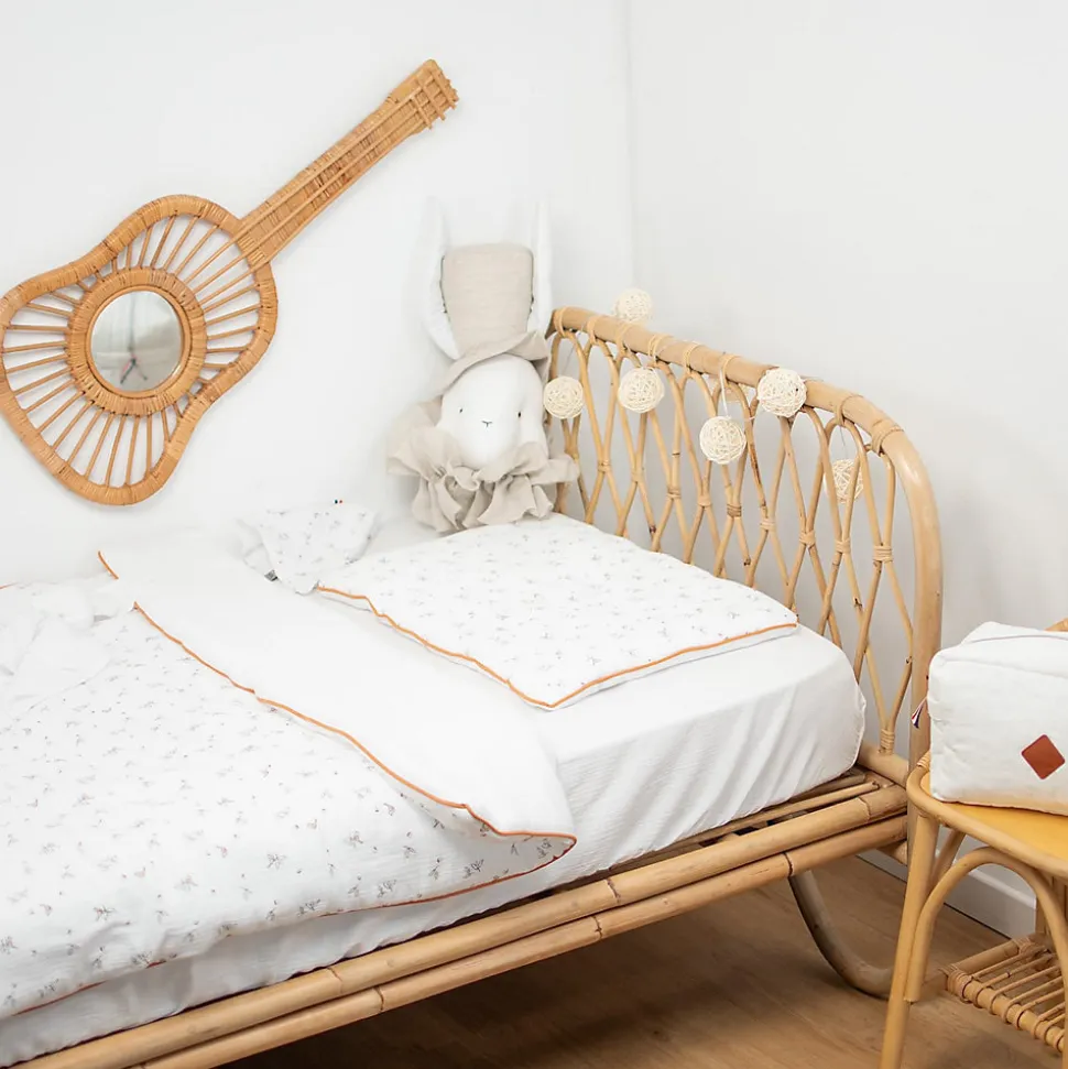 Découvrez l’ensemble prêt-à-dormir Melody, alliant confort et praticité avec une couette et un oreiller en gaze de coton doux et hypoallergénique, idéal pour les enfants. Fabriqué en France.