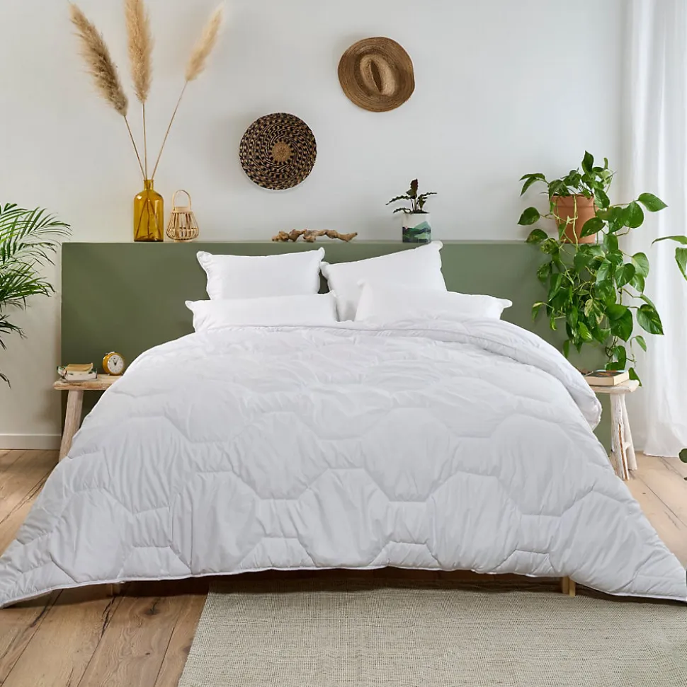 La COUETTE HÔTEL de Bleu Câlin- Couette très chaude avec 2 couches de 250g/m2 de garnissage- Enveloppe en coton qualité percale pour plus de douceur- Qualité de la fabrication françaiseUne couette de luxe très chaudeLa COUETTE HÔTEL de Bleu Câlin bénéficie d’une structure spécifique, inspirée des sacs de couchage grand froid. Son garnissage 500 gr/m² se compose de deux couches distinctes. Grâce à cette particularité, cette couette très chaude bénéficie d’un fort pouvoir isolant, qui lui permet de mieux conserver la chaleur. Son enveloppe en coton qualité percale associe une grande douceur et une excellente circulation de l’air. Idéale pour les personnes très sensibles au froid, cette couette vous assure un maximum de confort, même sans une chambre peu chauffée.Une couette au gonflant exceptionnelFabriquée en France, la COUETTE HÔTEL bénéficie de finitions soignées. Son piquage hexagonal lui offre un gonflant spectaculaire : ce modèle digne de la suite d’un grand hôtel apporte une touche de luxe dans la chambre à coucher. Pratique, cette couette d’hiver est très facile à entretenir, et vous pouvez profiter d’un environnement de sommeil sain en toutes circonstances, puisqu’elle se lave en machine à 40°.Produit comportant au moins 70% de matières recycléesProduit totalement recyclable