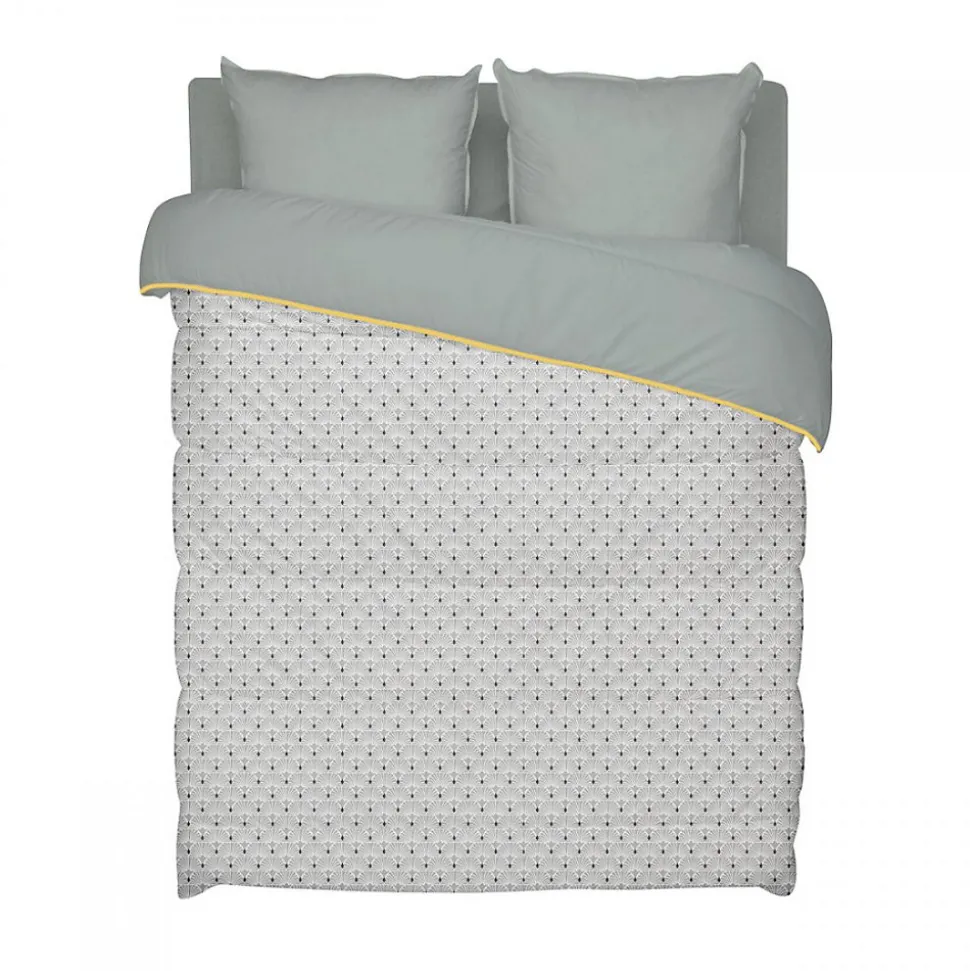La couette GRAPHIQUE de Bleu Câlin- Couette Chaude- Fabrication Française- Utilisation sans housse- Lavage à 40°CLa couette esprit édredonLa GRAPHIQUE de Bleu Câlin affiche un imprimé tendance et un piquage en ligne droite façon édredon. Offrez-vous un précieux gain de temps et de place : cette jolie couette réversible et très déco s’utilise sans housse. Avec son enveloppe 100% polyester au toucher peau de pêche et son gonflant, elle vous enveloppe dans un cocon douillet tout au long de la nuit.Bien chaude et facile à vivreLa couette GRAPHIQUE bénéficie d’un garnissage 350mg/m² qui assure chaleur et circulation optimale de l’air. Ce modèle est idéal en hiver et à la mi-saison. Cette couette fabriquée en France conserve ses qualités et sa belle apparence au fil du temps.Ce produit est certifié de la norme OEKO-TEX Standard 100 – Testé pour les substances nocives.Produit comportant au moins 70% de matières recycléesProduit totalement recyclable