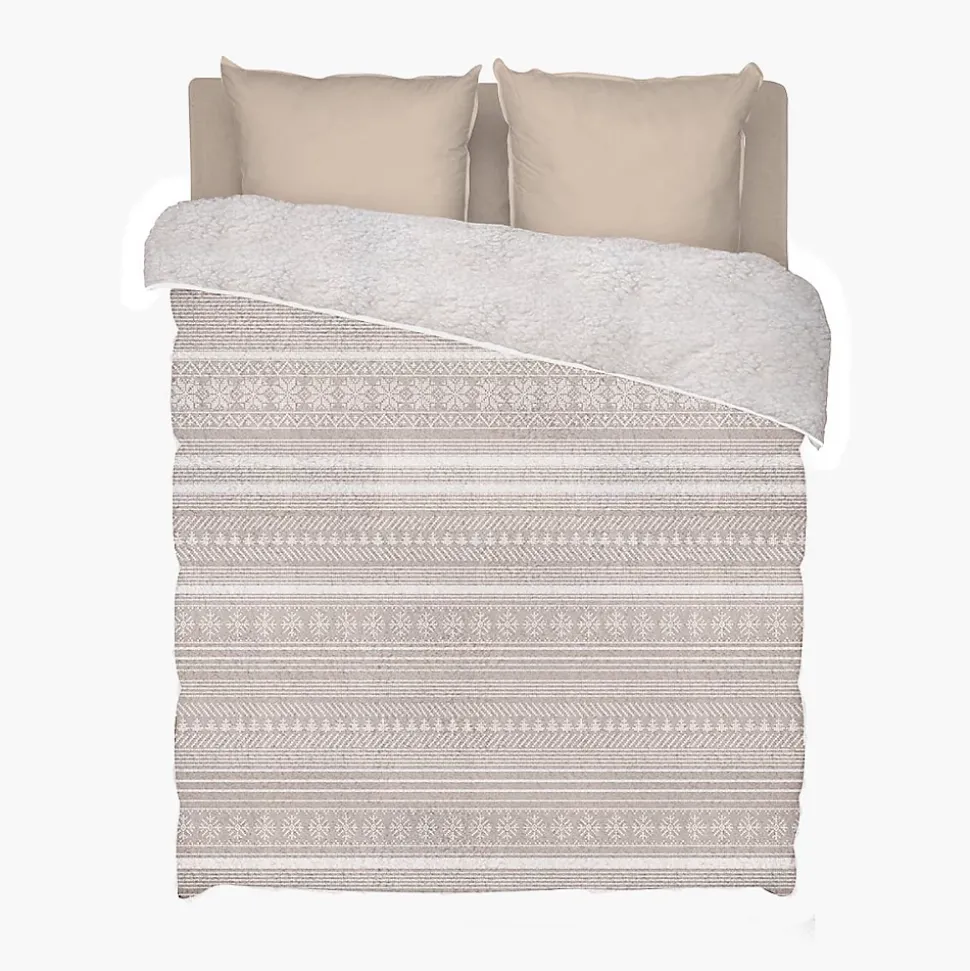 La couette Chalet de Bleu Câlin- Couette Chaude- Face extérieure 100% polyester toucher velours- Face intérieure 100% polyester sherpa polaire- Utilisation sans housse- Lavage en machine à 40°CLa beauté de la traditionLa couette Chalet est une création signée Bélier du Nord, la marque de literie traditionnelle de Bleu Câlin. Elle arbore d’élégants imprimés hivernaux dans les tons beige et blanc, rappelant la décoration typique des chalets de montagne.Une couverture chaude et polyvalenteComposé d’une face au toucher velours et d’un revers polaire sherpa cocooning effet laine de mouton, ce modèle peut s’utiliser aussi bien comme un plaid que comme une couette classique. Son garnissage généreux lui confère une chaleur idéale pour l’hiver.Piquage : Carreaux.Produit comportant au moins 70% de matières recycléesProduit totalement recyclable