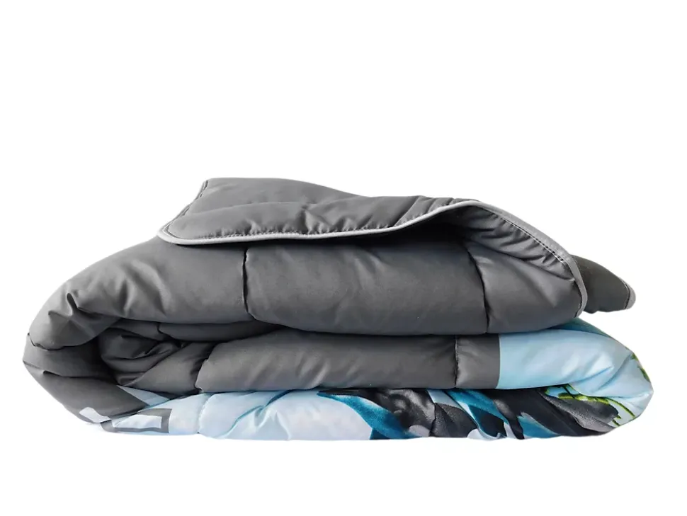 Couette double face imprimée- 1 personne 140 x 200Garnissage : 200 grs par m² de fibre creuse siliconnée « Sensifibre »Tissu MicrofibreCoins ronds – Double piquage – Biais Polycoton CouleurLavable à 40°Pas de séchage tambourPas de repassagePas de nettoyage à secFabrication française