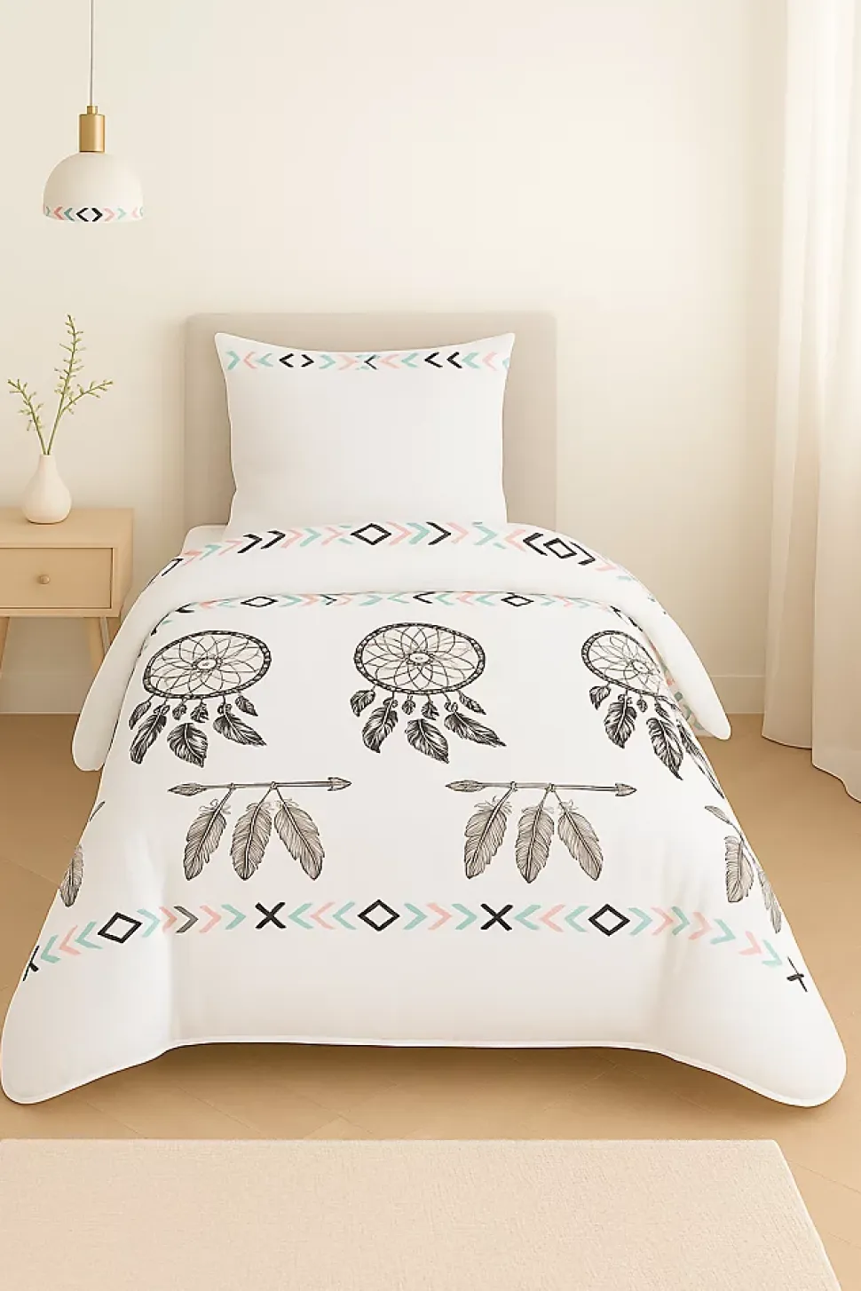 Couette Attrape rêve noir – 1 personne (140×200)Garnissage : 350 grs par m² de fibre creuse siliconéeTissu Microfibre imprimé / Dessous Microfibre blancCoins ronds – Double piquage – Biais Polycoton couleurVendue dans sa housse de rangementLavable à 40°Pas de séchage tambourPas de repassagePas de nettoyage à secFabrication française