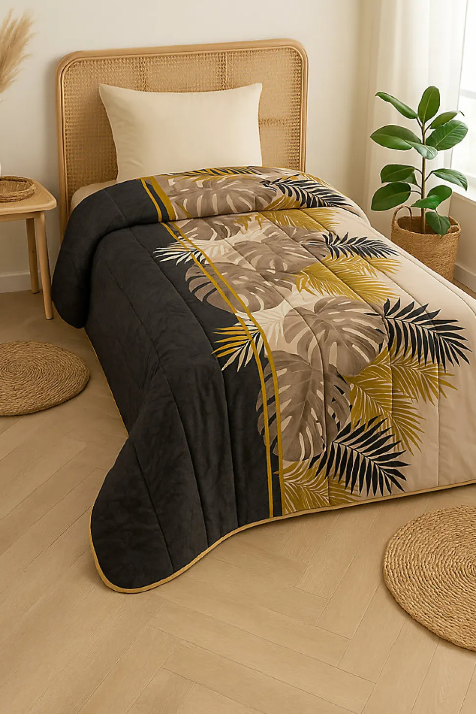 Couette double face imprimée – 1 personne (140×200)Garnissage : 400 grs par m² de fibre creuse siliconnée « Sensifibre »Tissu MicrofibreCoins ronds – Double piquage – Biais Polycoton CouleurLavable à 40°Pas de séchage tambourPas de repassagePas de nettoyage à secFabrication française