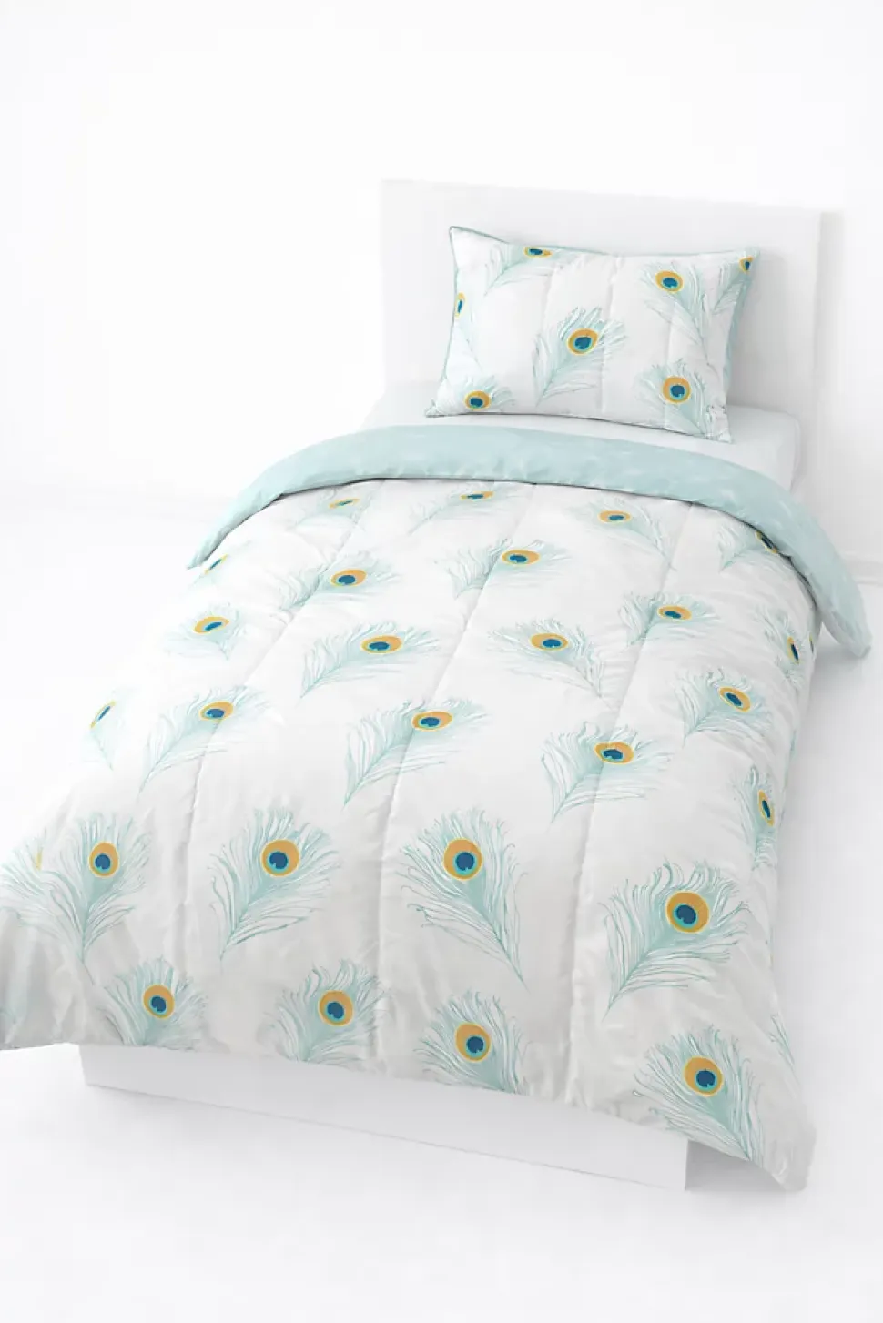Couette double face imprimée- 1 personne (140×200)Garnissage : 300 grs par m² de fibre polyesterTissu MicrofibreCoins carrés – Biais non tissé couleur aléatoireVendue dans sa housse de rangementLavable à 40°Pas de séchage tambourPas de repassagePas de nettoyage à secFabrication française