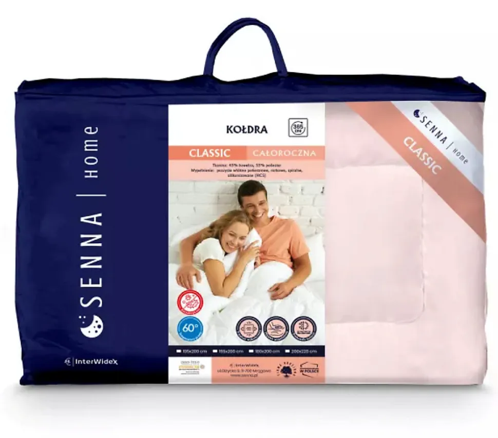 Couette classique monocouche d’épaisseur moyenne – un produit parfait pour un usage quotidien. Une couette merveilleusement moelleuse, douce et facile d’entretien. La couette est faite de matériaux de haute qualité et soigneusement finie. Un motif de matelassage correctement sélectionné empêche le rembourrage de « s’agglutiner ». Les bords sont finis avec une garniture durable et esthétique.Caractéristiques générales : couette très légère, moelleuse et chaude, bien enveloppanteNombre de couches : une seule coucheSaisonnalité : toute l’annéeTissu : 45% coton – 55% polyesterType de remplissage : synthétiqueGarnissage : 100 % fibre de polyester duveteuse, tubulaire, spirale, HCS siliconéPoids de remplissage : 1100gAnti-allergique : ouiCertificats : OEKO-TEX Standard 100, classe 1 (tous les composants textiles certifiés, y compris : tissu, rembourrage, fils, bordures, inserts et fermetures éclair)Couleur : roseCaractéristiques de finition : matériaux de qualité et durables, motif de matelassage empêchant le garnissage de bouger, bords du matelassage terminés par un passepoil blancDimensions : 155×200 cm, dimensions données hors utilisation, tolérance +/- 5 cmPays de production : Pologne – dans cette offre, vous achetez directement auprès du fabricant !Producteur : Inter WidexMarque : Senna Home