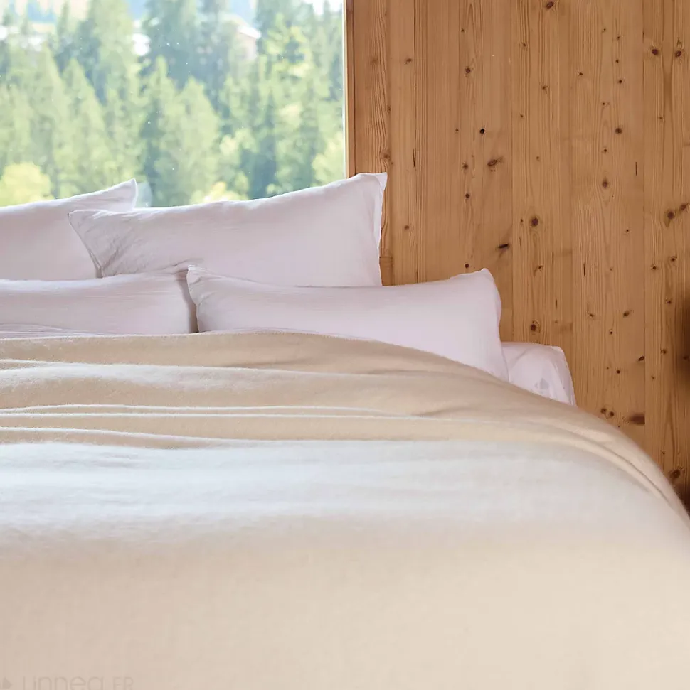 Couverture en laine mélangée 180×240 cm OSLOO beige naturelOffrez à votre intérieur une touche de confort et de modernité avec la couverture de la collection Osloo, confectionnée dans un mélange délicat de laine et d’acrylique. Conçue pour ceux qui apprécient à la fois le raffinement et la douceur, cette couverture unie se distingue par de subtils micro-motifs qui ajoutent une discrète touche de sophistication à son design épuré. Sa finition grattée 2 faces lui procure une texture agréablement moelleuse, tandis que les points de cheval apportent une note de style artisanal soigné. Disponible en quatre tailles (180×240 cm, 220×240 cm, 240×260 cm et 240×300 cm), la couverture Osloo est idéale pour habiller aussi bien les lits simples que les grands lits.Proposée en quatre coloris doux et élégants – naturel, lin, perle et abysse – elle s’harmonise parfaitement avec tout type de décoration, des intérieurs minimalistes aux ambiances plus chaleureuses. Apportez chaleur et style à votre espace avec la couverture Osloo, parfaite pour ceux qui recherchent un équilibre entre élégance intemporelle et confort absolu.La collection OSLOO est fabriquée en France.Côté technique :Matière : MixtesComposition : 59% laine, 27% acrylique, 14% mohairFinition : grattée 2 faces – point de chevalGrammage : 320 g/m2Forme : rectangulaireMotif : uni, micro-motifDimensions : 180×240 cmColoris : beige naturelFabriqué en FranceLes plus du produit :Belle qualité de tissu pour ce linge de lit en mélange de laine et acryliqueFabrication française pour cette couverture au toucher soupleLinge de lit certifié Standard 100 OEKO-TEX, pour des produits meilleurs pour votre santé.Côté pratique : Entretien facile : lavage en machine à 30°C, ja