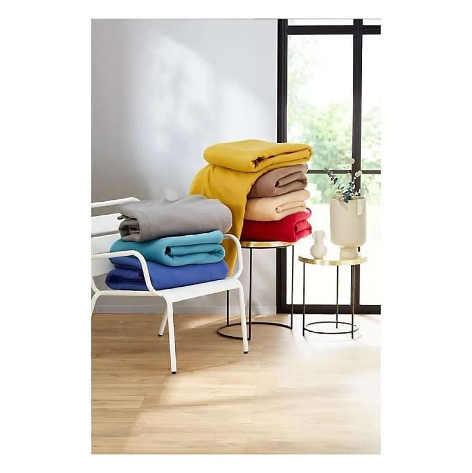 Chaleur et douceur seront au rendez-vous avec cette couverture unie de 320gr/m² qui apportera du réconfort à vos douces nuits.Celle-ci est en polaire pour un confort optimal.Plusieurs dimensions vous sont proposées: 180 x 220 cm, 220 x 240 cm et 240 x 260 cmUne belle palette de coloris qui vous permettra d’harmoniser votre déco de chambre à coucher : myosotis, miel, tilleul, fraise, marine, taupe, acier, sable, chocolat et prune. Cette couverture est ourlée par 4 piqures afin d’obtenir un rendu très qualitatif.Lavable en machine à 60°. Caractéristiques:Dimensions : 180 x 220 cm, 220 x 240 cm et 240 x 260 cmColoris : myosotis, miel, tilleul, fraise, marine, taupe, acier, sable, chocolat et pruneComposition : 100% polyesterFinition : ourlets et coins carrés Vendue à l’unité