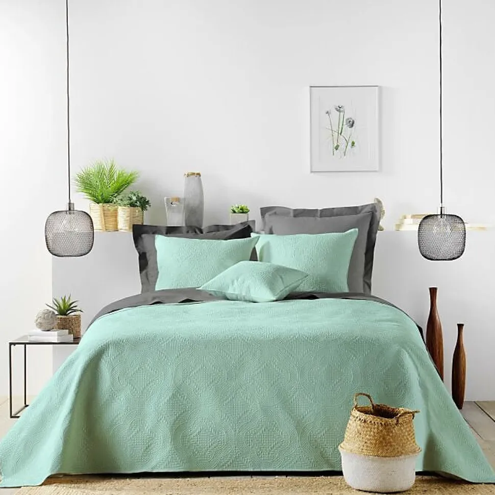Couvre-Lit Matelassé (220 x 240 cm) et 2 Taies d’Oreiller (60 x 60 cm) Romane Gris, Microfibre UnieMICROFIBRE UNIE – Le linge de maison en microfibre, qu’il s’agisse de linge de lit, tapis, rideaux ou même de nappes, offre une combinaison entre douceur et durabilité. Avec son toucher doux et confortable, il procure un confort optimal pour le sommeil, les moments de détente ou les activités quotidiennes.Taille : 220×240 cm + 2 housse de coussin 60×60 cmMatière : 100% PolyesterCouleur : Vert saugeLavage à 40° – Séchage modéré – Repassage à 110°