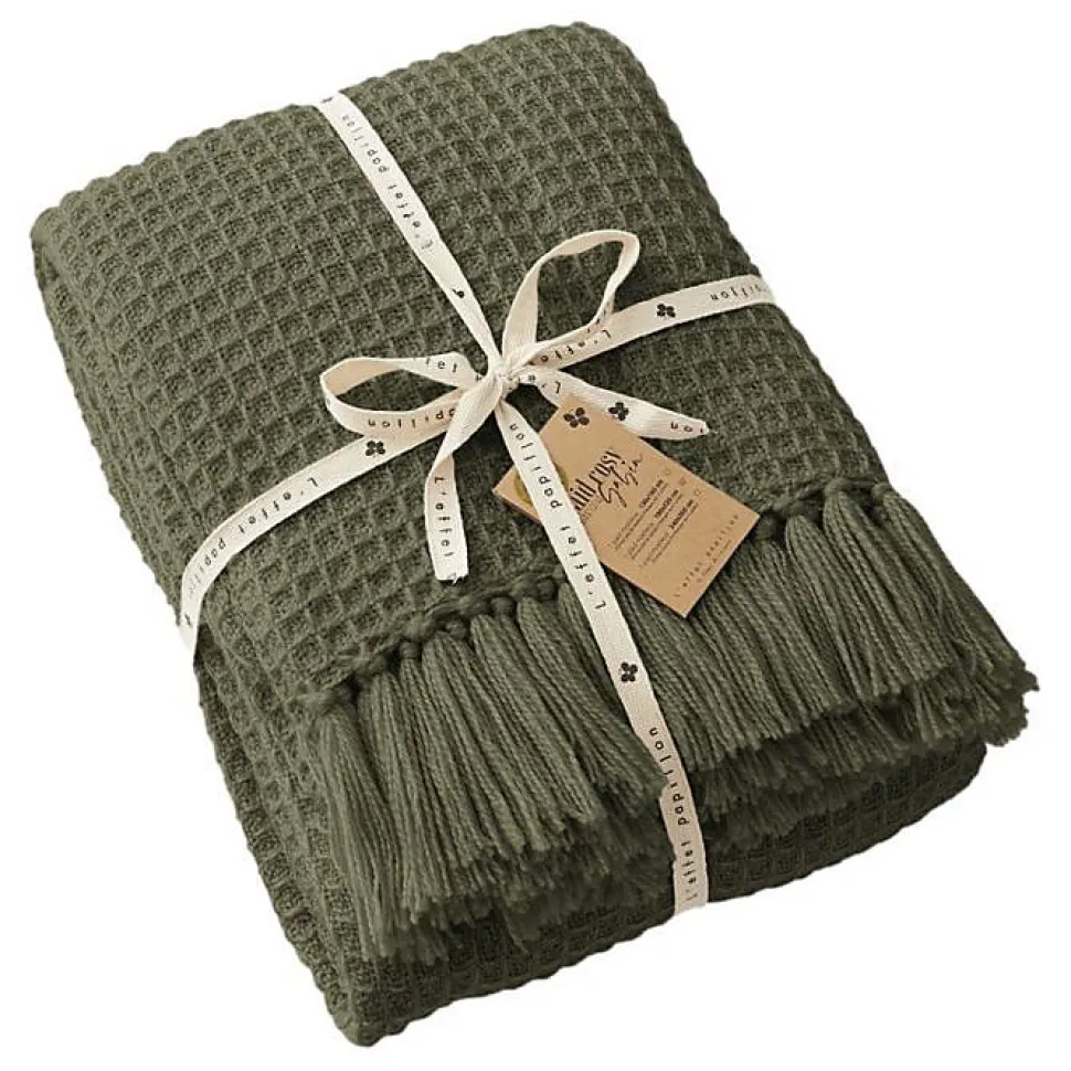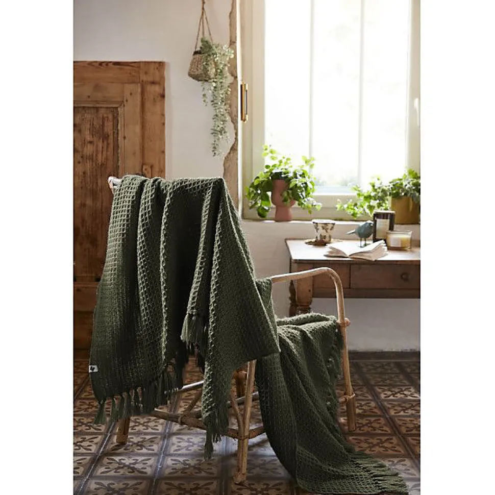 Couvre lit à franges nid d’abeille « Gabin » 240 x 260 cm – Gabin Thym