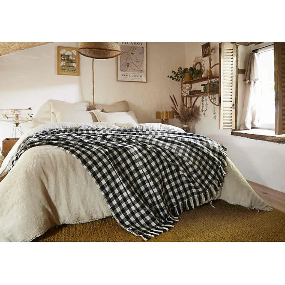 Craquez pour ce couvre lit à franges tissé teint « Gabriel », une matière légère, fluide et surtout très douce. Envie de cocooning sur votre canapé devant vos séries préférées ou encore un désir de relooker votre chambre à coucher, de lui donner un petit coup de jeune et de modernité, il n’y a pas de doutes, il est bel et bien un élément de décoration… La touche finale sur votre lit.Vous pouvez marier le c