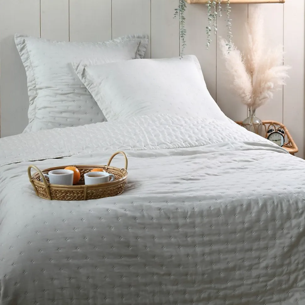 Découvrez un couvre-lit décoratif original et indémodable pour votre lit deux personnes. Le boutis coloris naturel est réversible et accompagné de 2 taies d’oreillers de dimensions 65 x 65 cm reprenant le même motif.Caractéristiques du couvre-lit boutis coloris naturel:Dimensions du couvre-lit: 240×220 cmRéversible coloris naturel (beige)2 taies d’oreiller 65×65 cmComposition : 100% polyesterCe couvre-lit est conforme aux exigences du décret n°2000-164 du 23 février 2000.Label de qualité OEKO-TEX STANDARD 100 garantissant l’absence de substances nocives pour la santé et pour l’environnement.