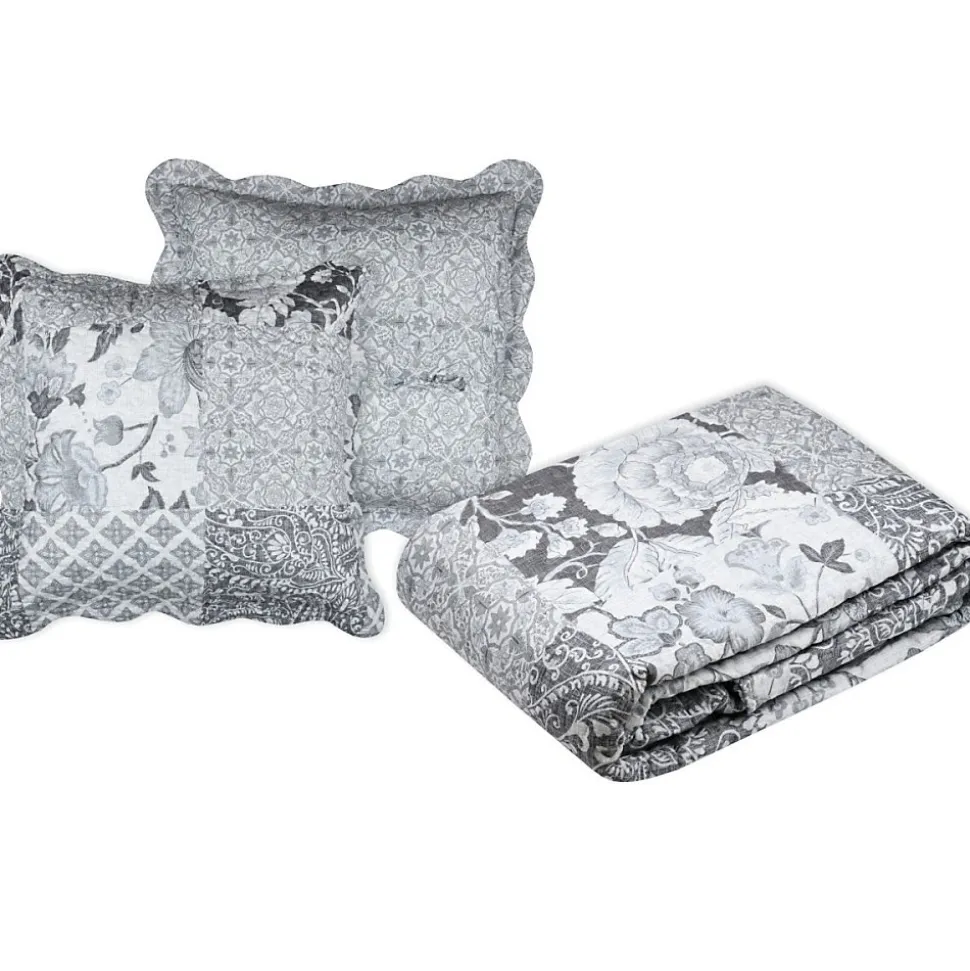 Découvrez un couvre-lit décoratif original et indémodable pour votre lit deux personnes. Le boutis OCTAVIA coloris gris est réversible et accompagné de 2 taies d’oreillers de dimensions 65 x 65 cm reprenant le même motif.Caractéristiques du couvre-lit boutis OCTAVIA:Dimensions du couvre-lit: 240×220 cmRéversible2 taies d’oreiller 65×65 cmComposition : 100% polyesterCe couvre-lit est conforme aux exigences du décret n°2000-164 du 23 février 2000.Label de qualité OEKO-TEX STANDARD 100 garantissant l’absence de substances nocives pour la santé et pour l’environnement.
