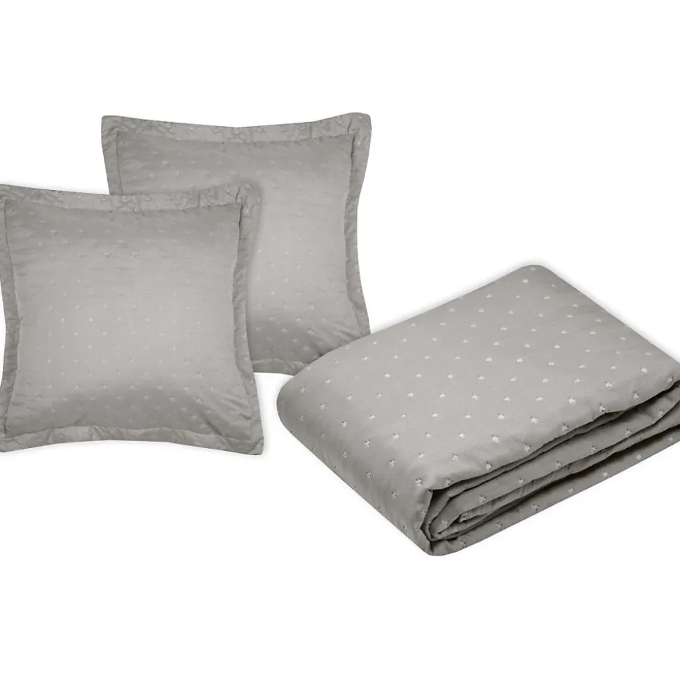 Découvrez un couvre-lit décoratif original et indémodable pour votre lit deux personnes. Le couvre lit boutis est réversible et accompagné de 2 taies d’oreillers de dimensions 65 x 65 cm reprenant le même motif.Caractéristiques du couvre-lit boutis réversible:Dimensions du couvre-lit: 260×240 cmRéversible2 taies d’oreiller 65×65 cmComposition : 100% polyesterCe couvre-lit est conforme aux exigences du décret n°2000-164 du 23 février 2000.Label de qualité OEKO-TEX STANDARD 100 garantissant l’absence de substances nocives pour la santé et pour l’environnement.