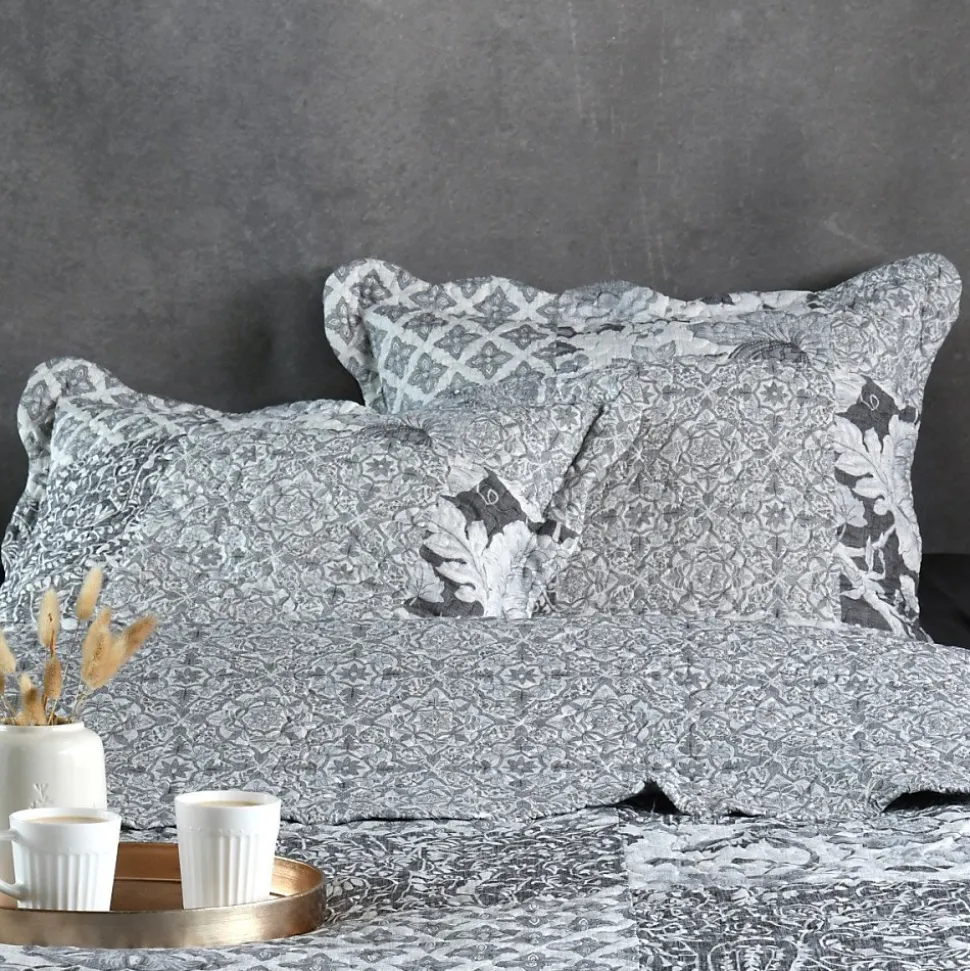 Découvrez un couvre-lit décoratif original et indémodable pour votre lit deux personnes. Le boutis OCTAVIA coloris gris est réversible et accompagné de 2 taies d’oreillers de dimensions 65 x 65 cm reprenant le même motif.Caractéristiques du couvre-lit boutis OCTAVIA:Dimensions du couvre-lit: 260×240 cmRéversible2 taies d’oreiller 65×65 cmComposition : 100% polyesterCe couvre-lit est conforme aux exigences du décret n°2000-164 du 23 février 2000.Label de qualité OEKO-TEX STANDARD 100 garantissant l’absence de substances nocives pour la santé et pour l’environnement.