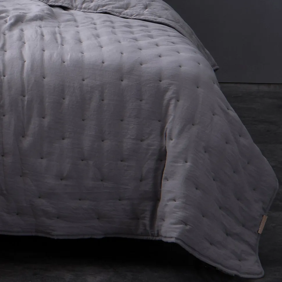 Jeté de lit gris capitonné style lin lavé – 230x250cm – Gris