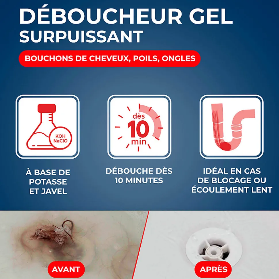 - Idéal pour éliminer les bouchons de cheveux