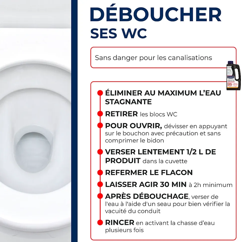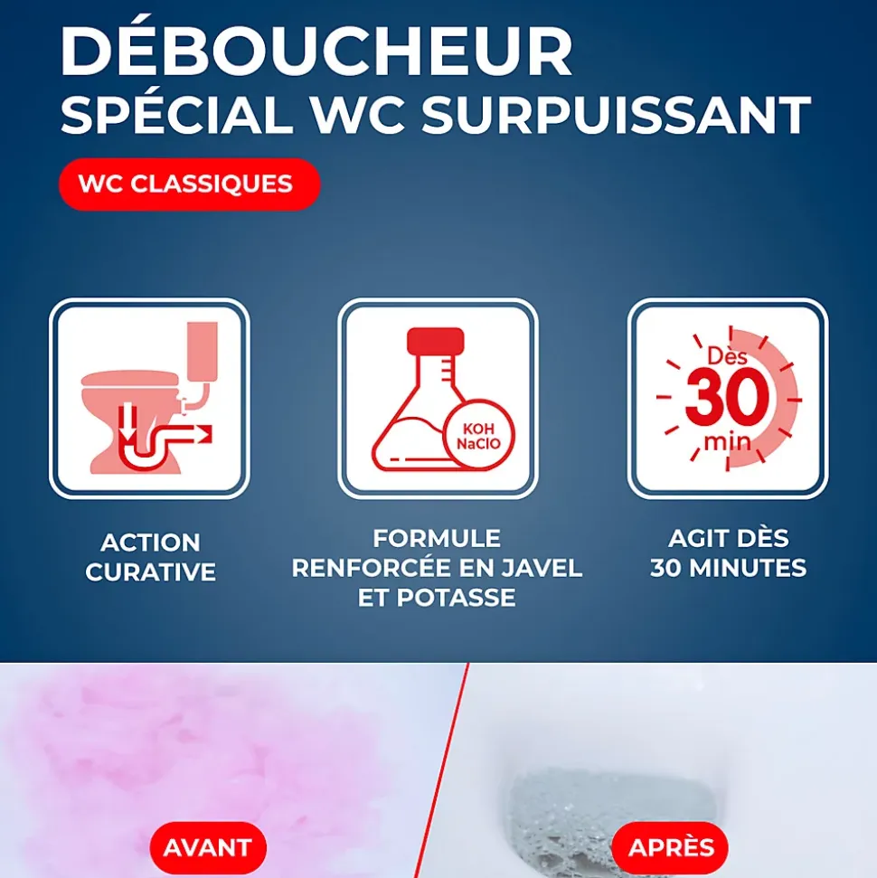 Idéal pour dissoudre les matières organiques et le papier toilette Formule sans acide sulfurique, à base de potasse et renforcée en Javel Convient pour les WC classiques