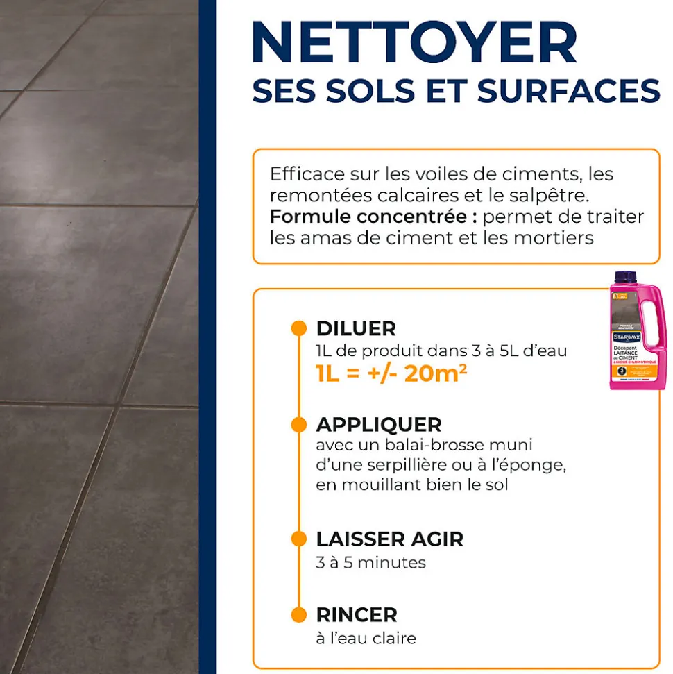 Décapant laitance de ciment carrelages Starwax 1L