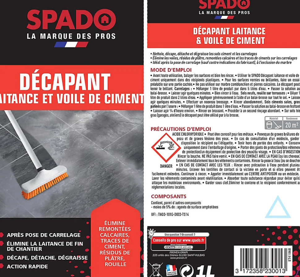 Décapant laitance et voile de ciment Spado professionnel 1L