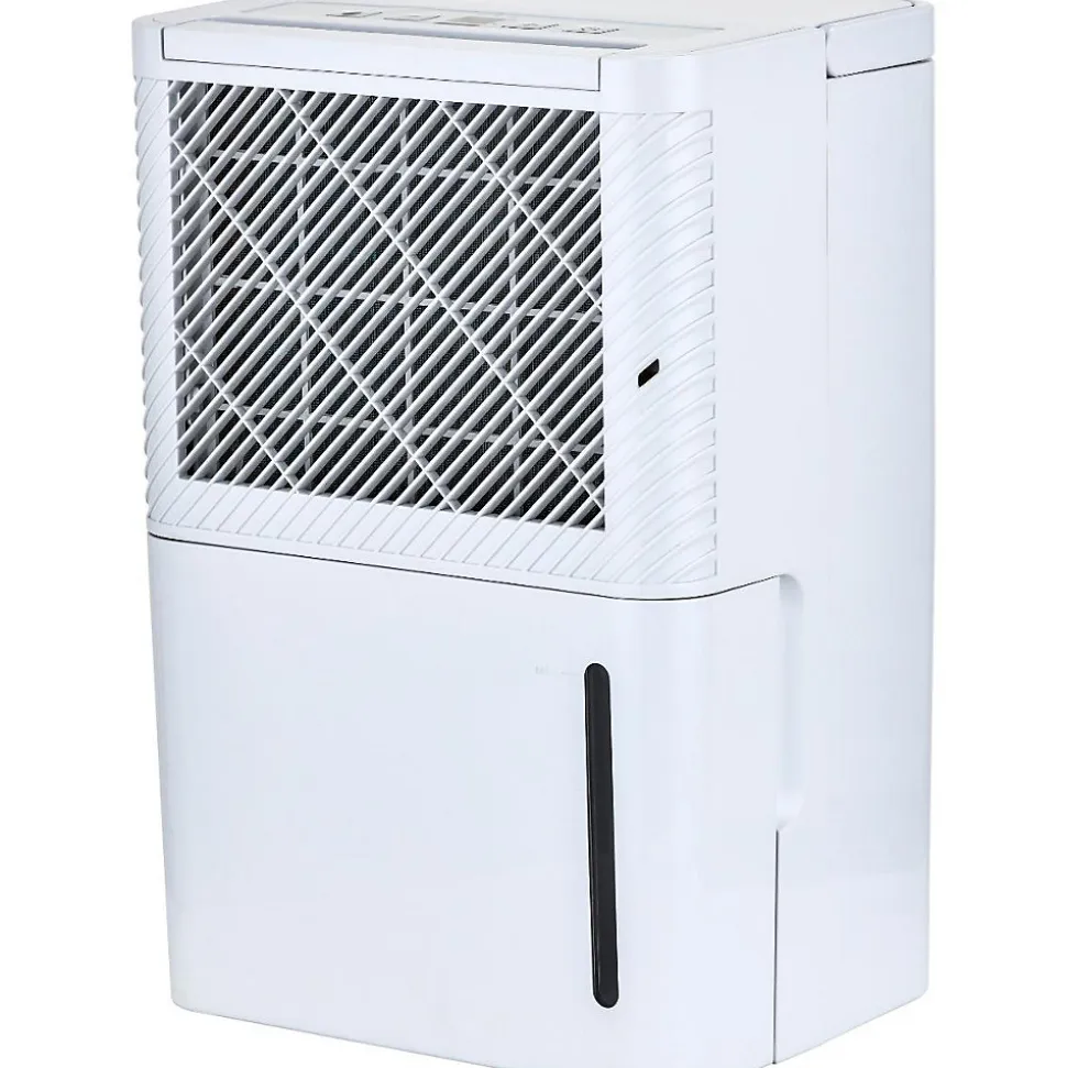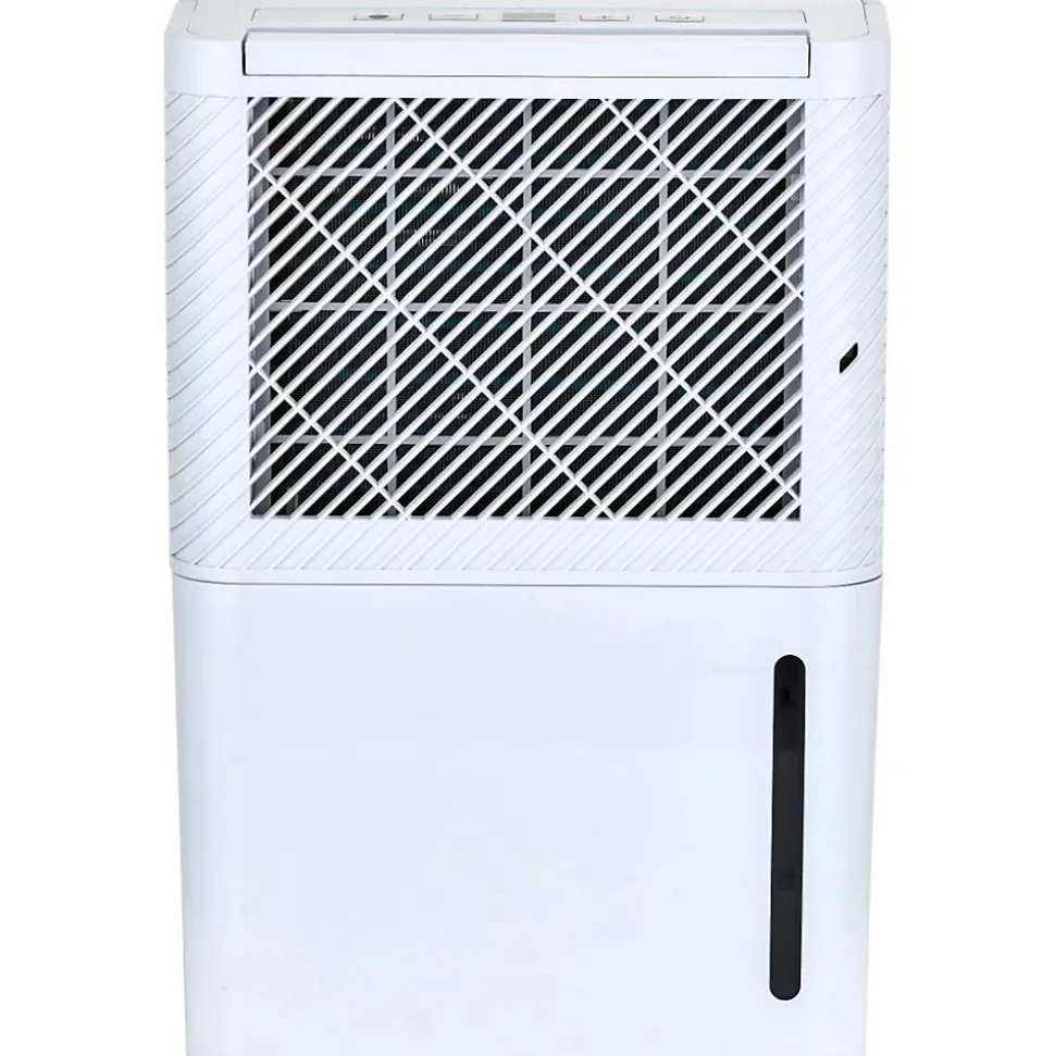 Déshumidificateur électronique. Couleur(s) : blanc. Capacité de déshumidification : 10, ou 12L/jour. Débit d’air : 120m³/h. Compresseur haute qualité, réfrigérant R290. Réservoir d’eau : 2,2L (amovible). Minuterie programmable jusqu’à 24 heures. Vidange continue : connecteur pour évacuation permanente par gravité. Commande tactile pour un réglage facile. Filtre à air lavable pour un entretien facile. S’éteint lorsque le réservoir est plein pour éviter les débordements. Niveau sonore : 45dB (mode silencieux). Roulette fournie pour un déplacement facile. Réglage de l’humidité : ajustement électronique du pourcentage d’humidité dans l’air