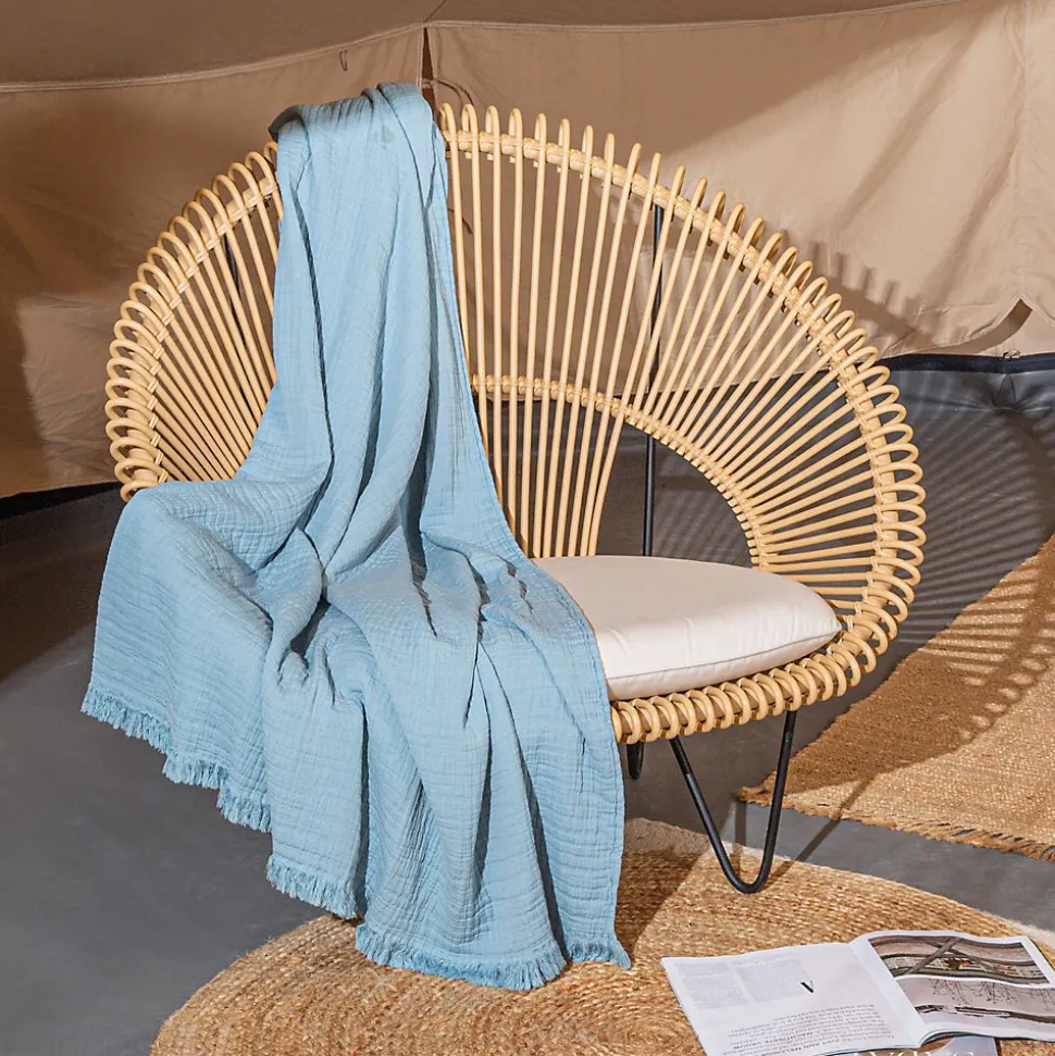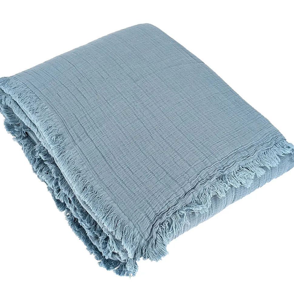 Dessus de lit 230×250 cm BREHAT gaze de coton bleu orageCraquez pour ce dessus de lit de la collection BREHAT qui deviendra votre indispensable. En matière gaze de coton, il vous offrira une douceur incroyable. Son apparence naturellement froissé, qui s’accentuera au fil des lavages, donnera à votre intérieur une décoration bohème totalement unique. Ses différentes couleurs permettront au dessus de lit BREHAT de s’adapter à tous les intérieurs. Touche finale de votre décoration, il apportera confort et chaleur à votre chambre à coucher, mais pas que ! Il peuvent tout aussi bien trouver leur place, sur un fauteuil ou un canapé. Et pour les amateurs de lits bien finis, ce dessus de lit sera parfait pour également dissimuler matelas ou sommier et donner du cachet à votre pièce favorite. Ses finitions frangées lui donne un aspect encore plus harmonieux. Côté technique :Matière : 100% cotonQualité : gaze de cotonGrammage : 300 g/m2Norme : OEKO-TEXFinition : frange sur 4 côtésFabriqué au PortugalLes plus du produit :Gaze de coton 100% coton, matière phare et tendanceDifférents coloris disponibleEgalement disponible en 180×250 et 270x250Côté pratique :Entretien facile : lavage en machine à 30°C ; séchage en tambour non autorisé ; javel et chlore interditsSymboles d’entretien :Cycle normal 30°CPas de blanchimentSéchage en tambour non autoriséEntretien professionnel à sec