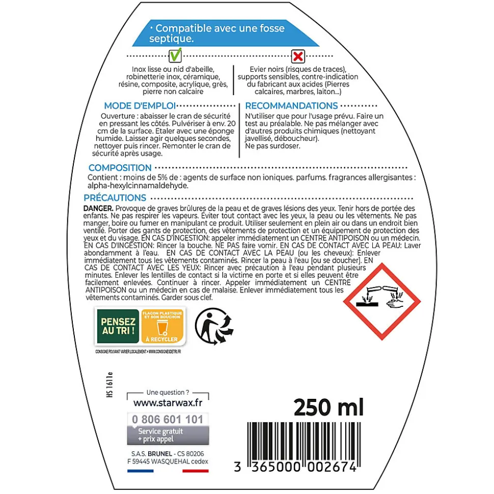 Détartrant dégraissant spécial évier Starwax 250ml