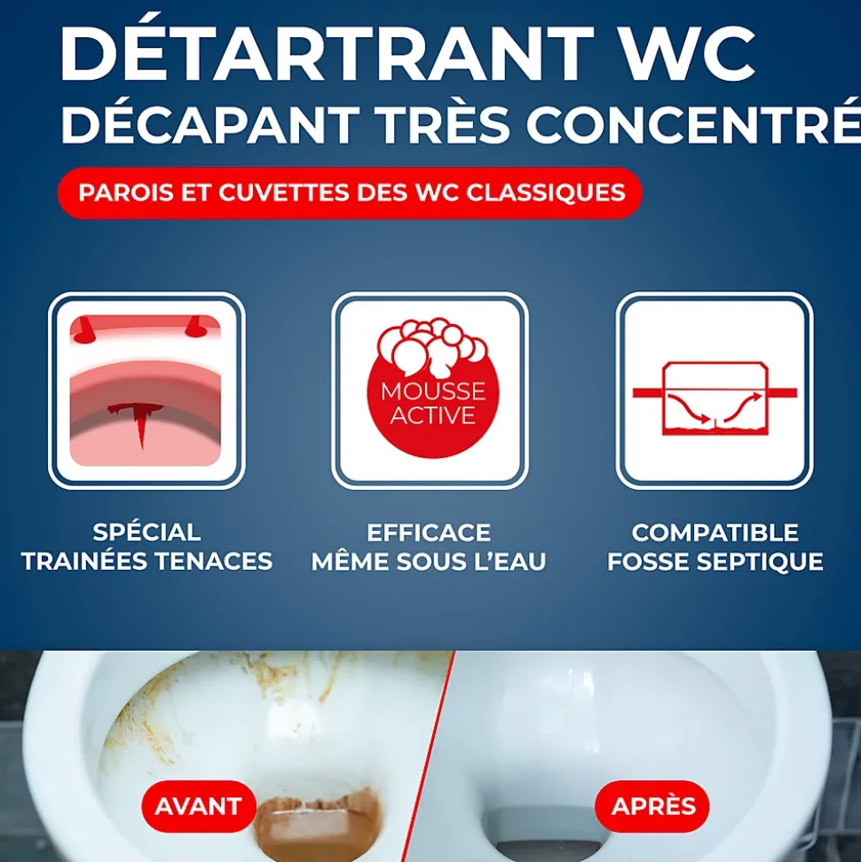 - Idéal pour détartrer les WC