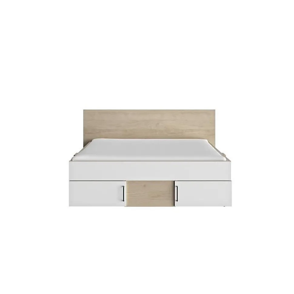 Découvrez notre Lit Rangement 140 X 190 SWIVEL, un mariage parfait de fonctionnalité et d’esthétique. Sa structure en panneaux de particules revetus de papier Chene blond et uni Blanc offre a la fois durabilité et élégance. Les chants uni Blanc ou Chene ajoutent une touche de finesse supplémentaire. Doté de deux tiroirs a ouverture pivotante en pied de lit, ce lit offre un espace de rangement pratique avec des dimensions généreuses de 45×45 cm chacun. De plus, les deux casiers latéraux avec une séparation offrent un espace supplémentaire pour organiser vos effets personnels. Les poignées en ABS noir ajoutent une touche moderne au design. Avec sa réversibilité gauche/droite au montage, ce lit s’adapte parfaitement a votre espace et a vos besoins. Veuillez noter que le sommier et le matelas ne sont pas inclus, vous permettant de personnaliser votre expérience de sommeil selon vos préférences.
