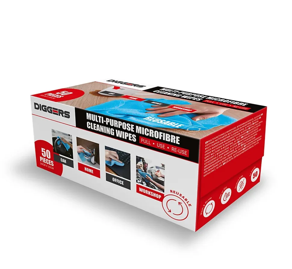 Ce chiffon en microfibre Diggers est un chiffon très pratique lors du nettoyage, car vous pouvez l’utiliser sec et humide. Les microfibres puissantes assurent un nettoyage et une absorption parfaits.