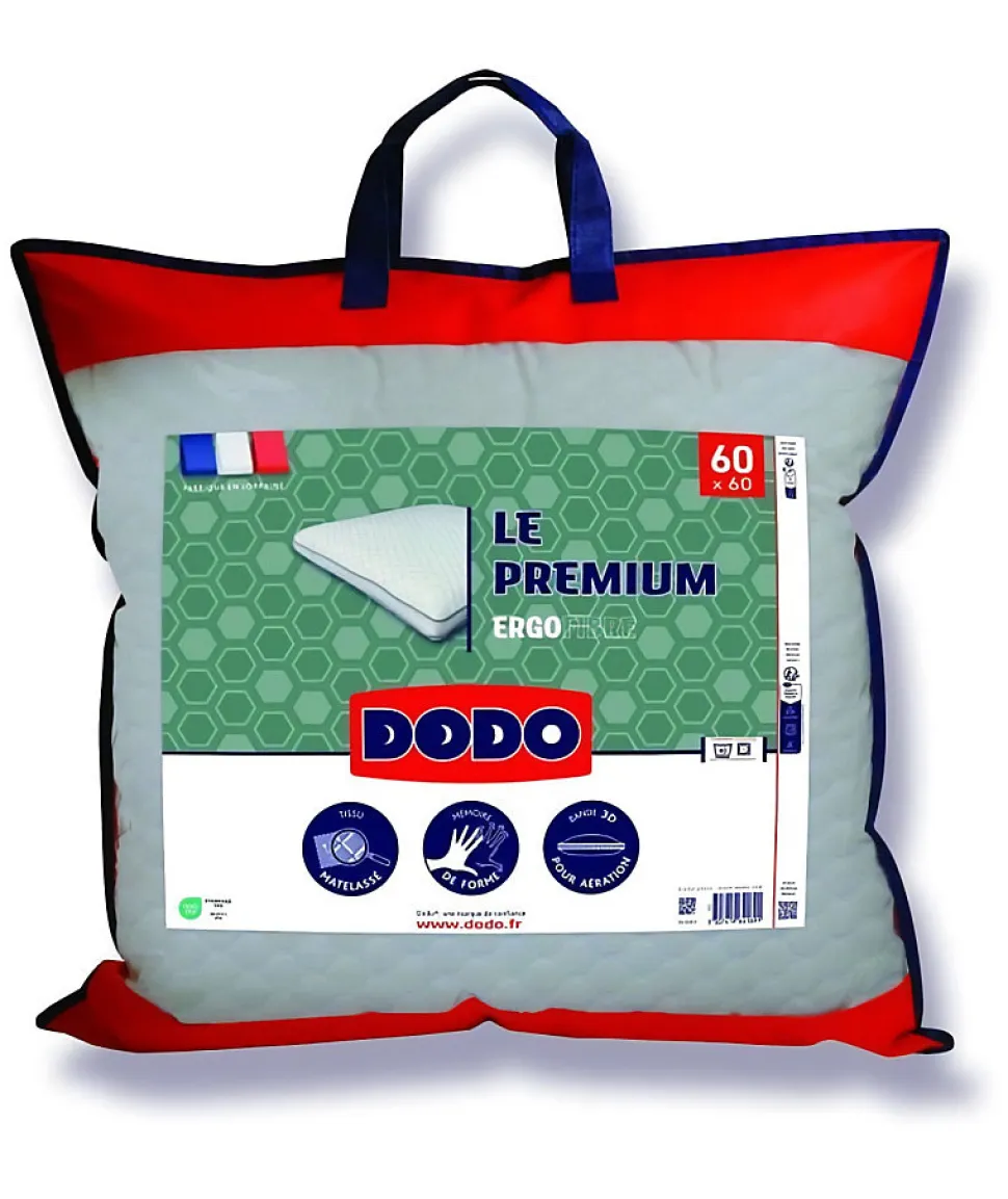 L’Oreiller Le Premium DODO 60×60 cm épouse parfaitement la morphologie grâce à sa mousse à mémoire de forme innovante. Taie déhoussable en coton, fermeture éclair, fabrication française, entretien facile en machine.