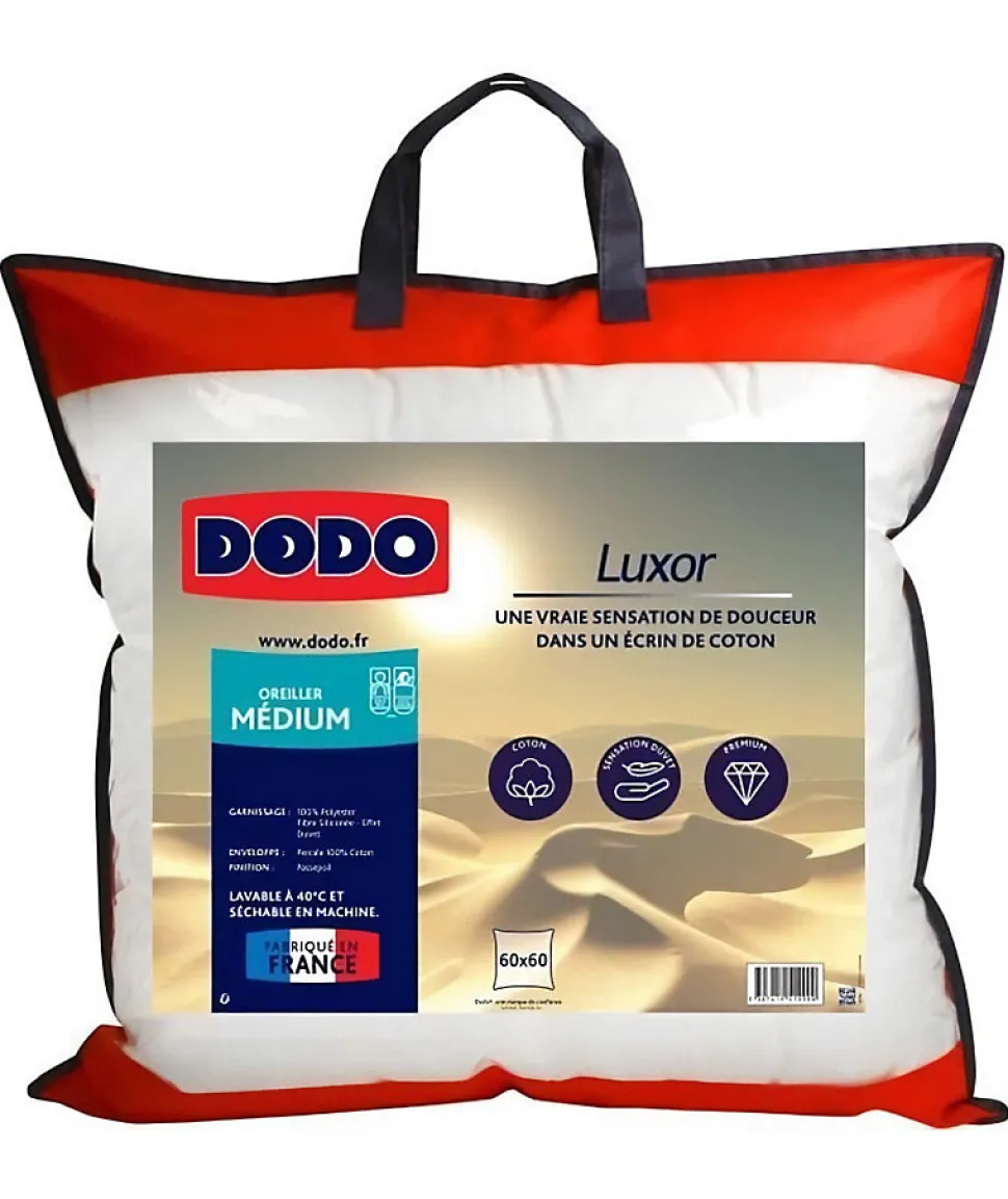 Oreiller uni DODO 60X60 Enveloppe Percale 100% Coton Garnissage 100% Polyester Fibre siliconée – Effet Duvet – Confort medium – Tres belles finition Passepoil