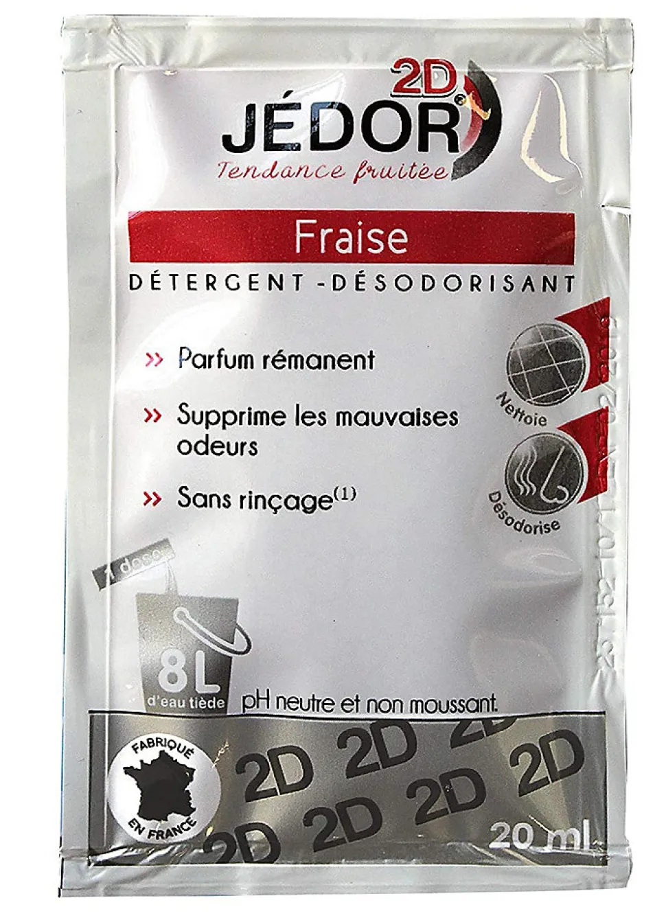 Dosettes 2D détergent nettoyant désodorisant – Jédor – Parfum Fraise (100 dosettes)