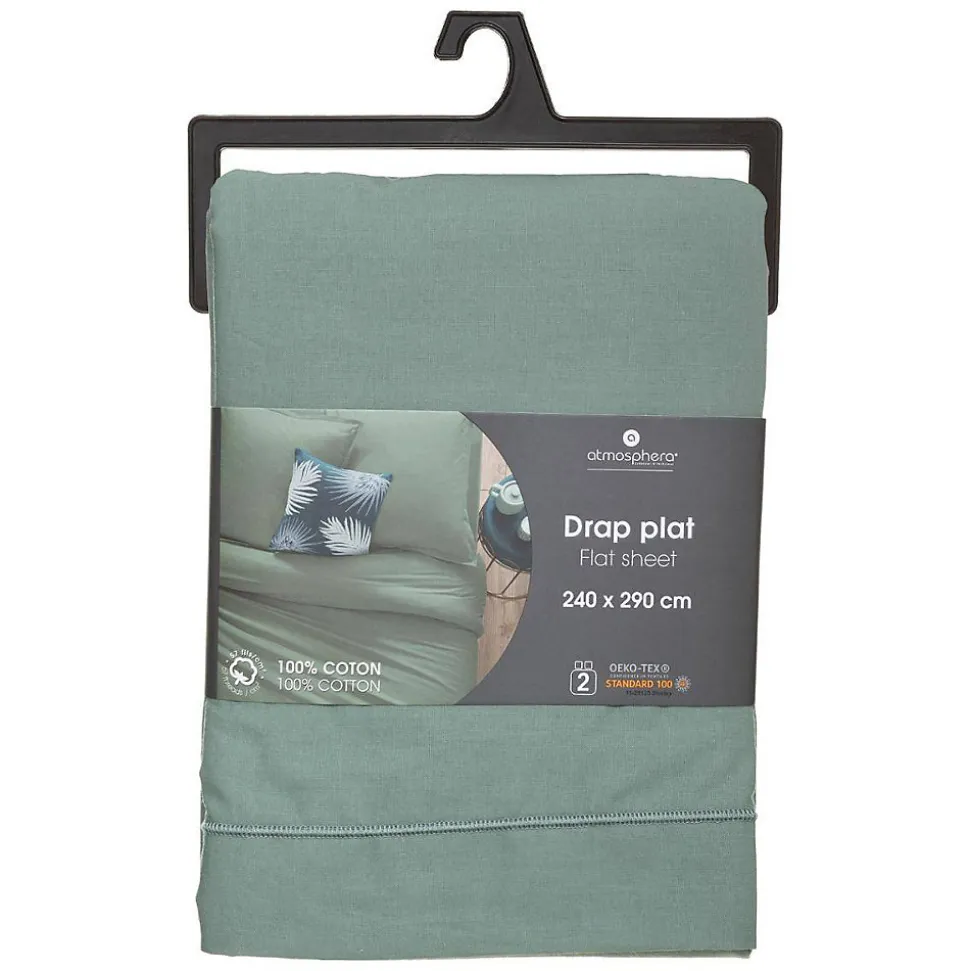 Drap en coton - vert céladon 240x290 cm - Atmosphera