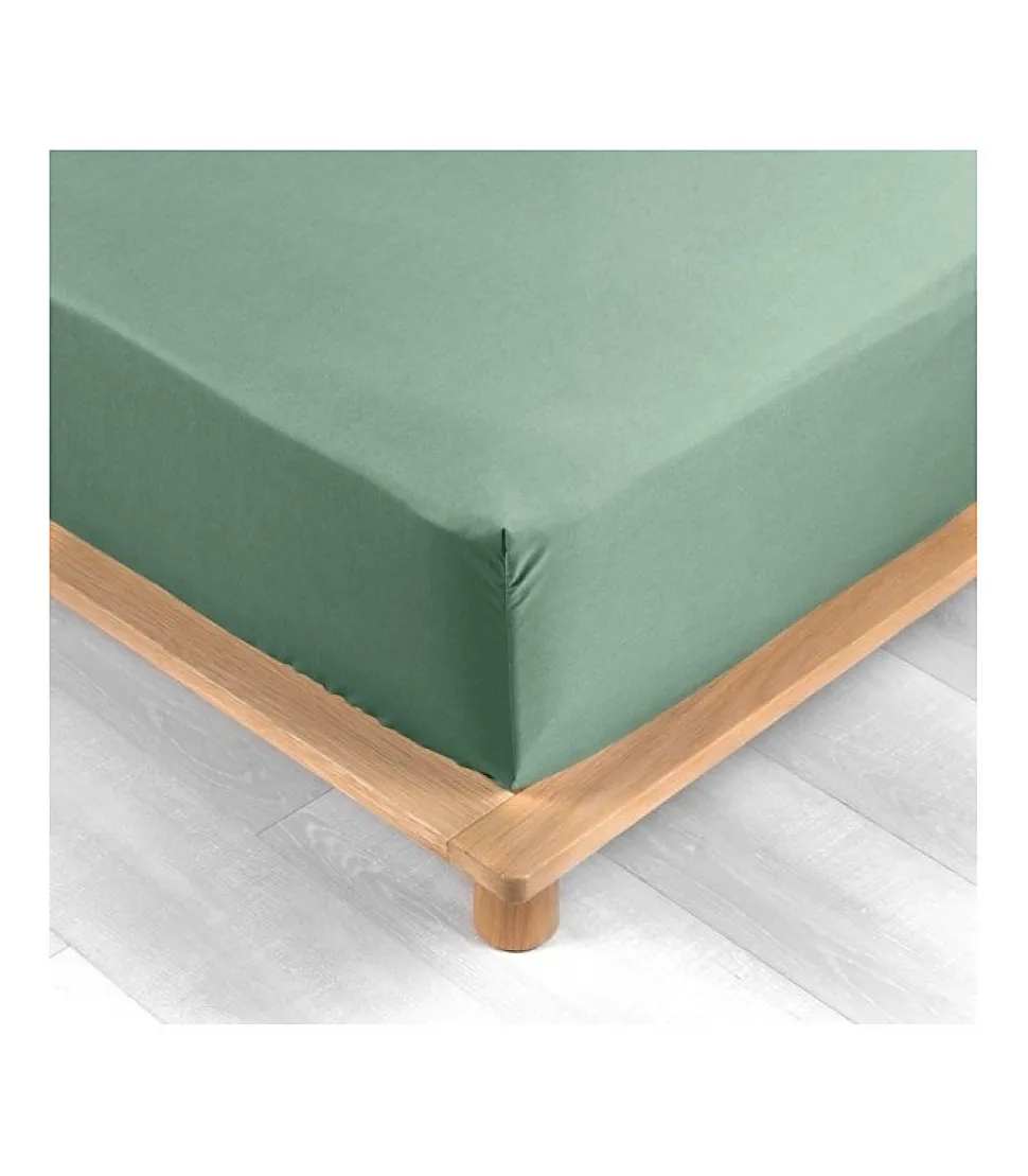 DRAP HOUSSE 2 PERSONNES PERCALE UNI 78 FILS PERCALINE TILLEUL – 160x200cm – Vert tilleul