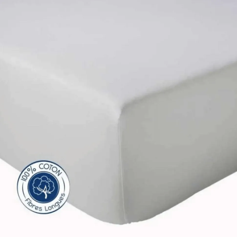 Drap Housse coton bonnet 23 cm fabriqué en France (180×190 cm – Gris Galet)