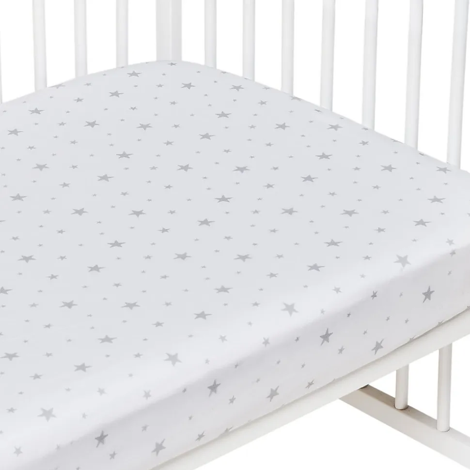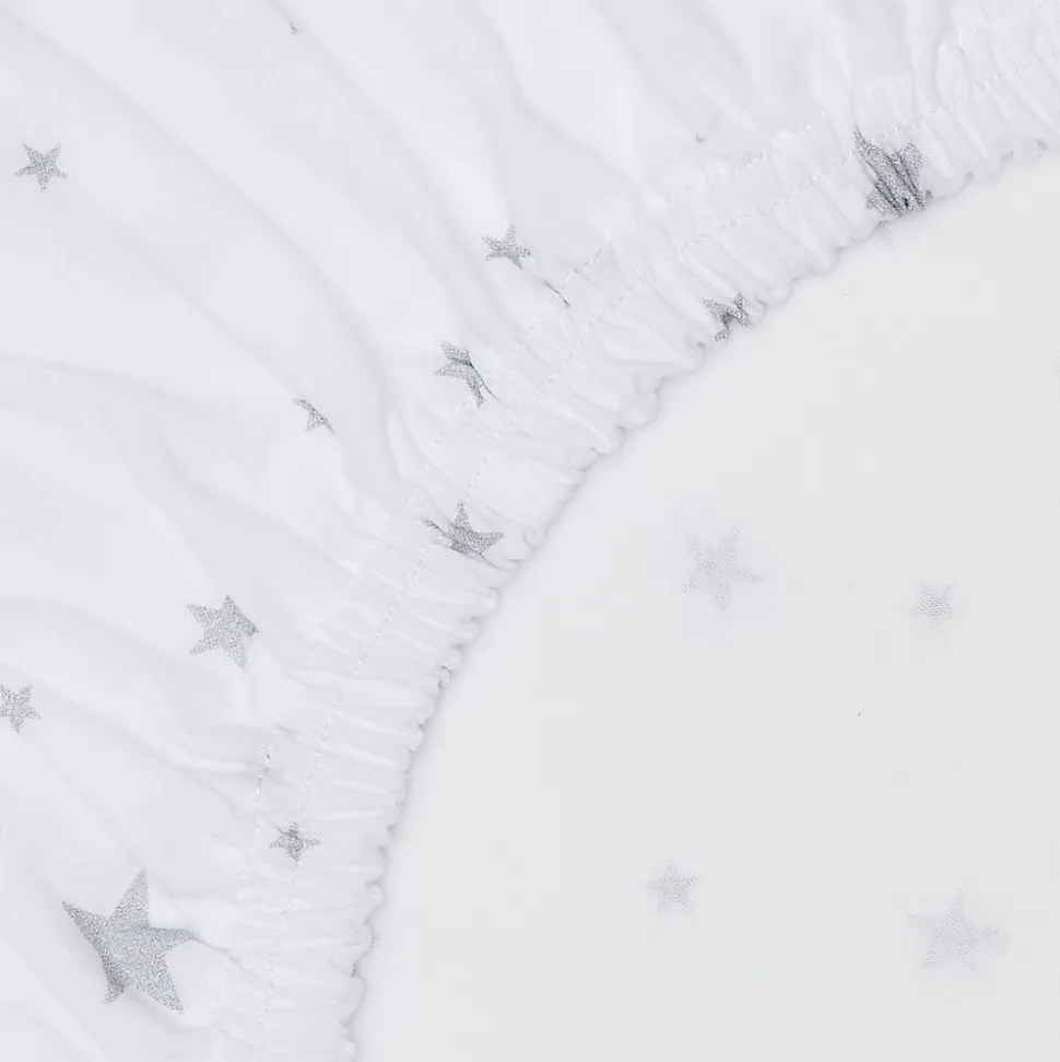 Découvrez le drap-housse en coton doux de la Collection Stella. Made in France, certifié Oeko-Tex, avec imprimé étoiles. Ajustement parfait grâce à son élasticité intégrale. Disponible en blanc ou gris et en plusieurs tailles.