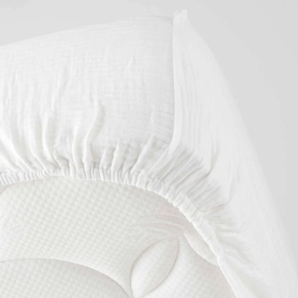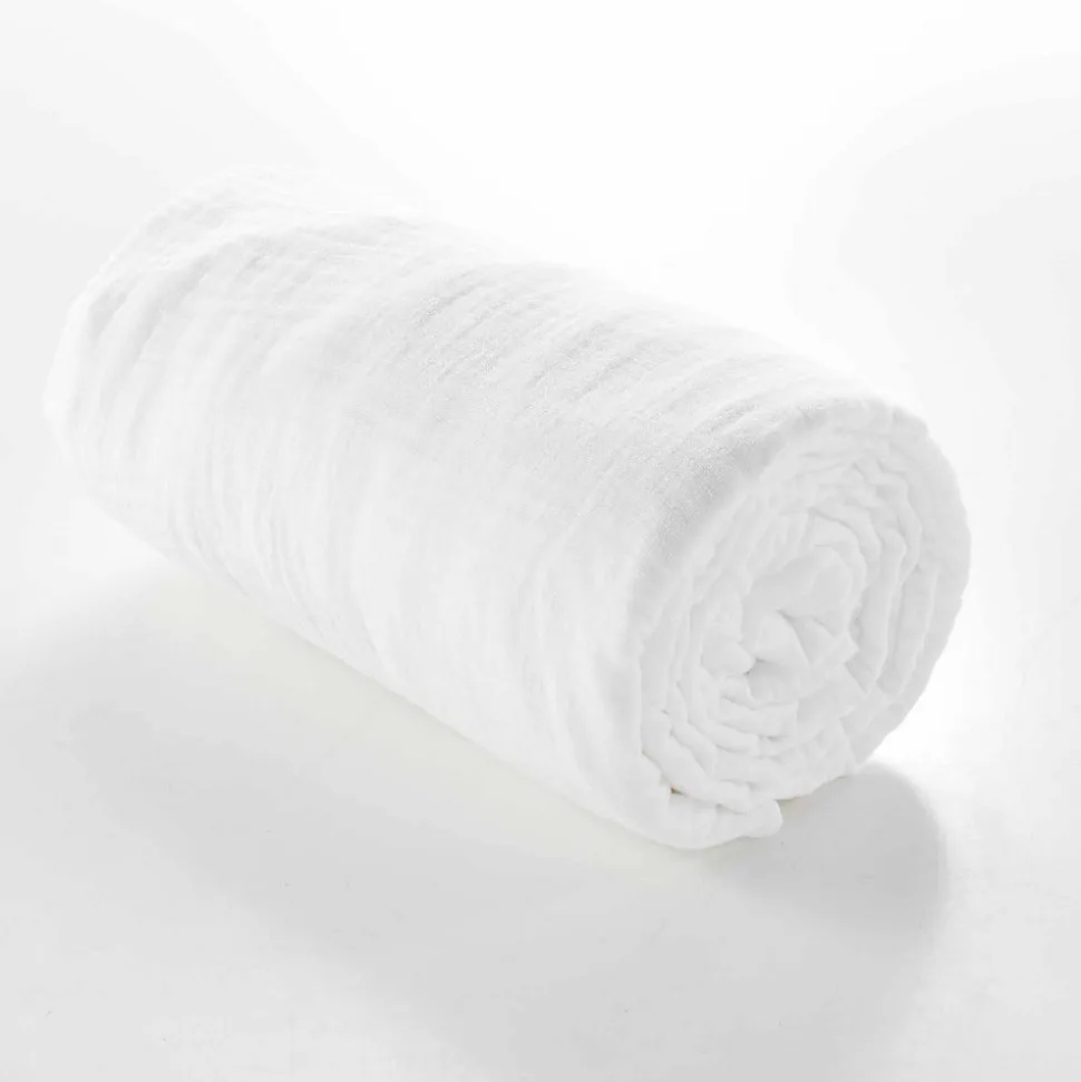 Drap housse double gaze de coton blanc 140x190cm – 140x190cm – Blanc