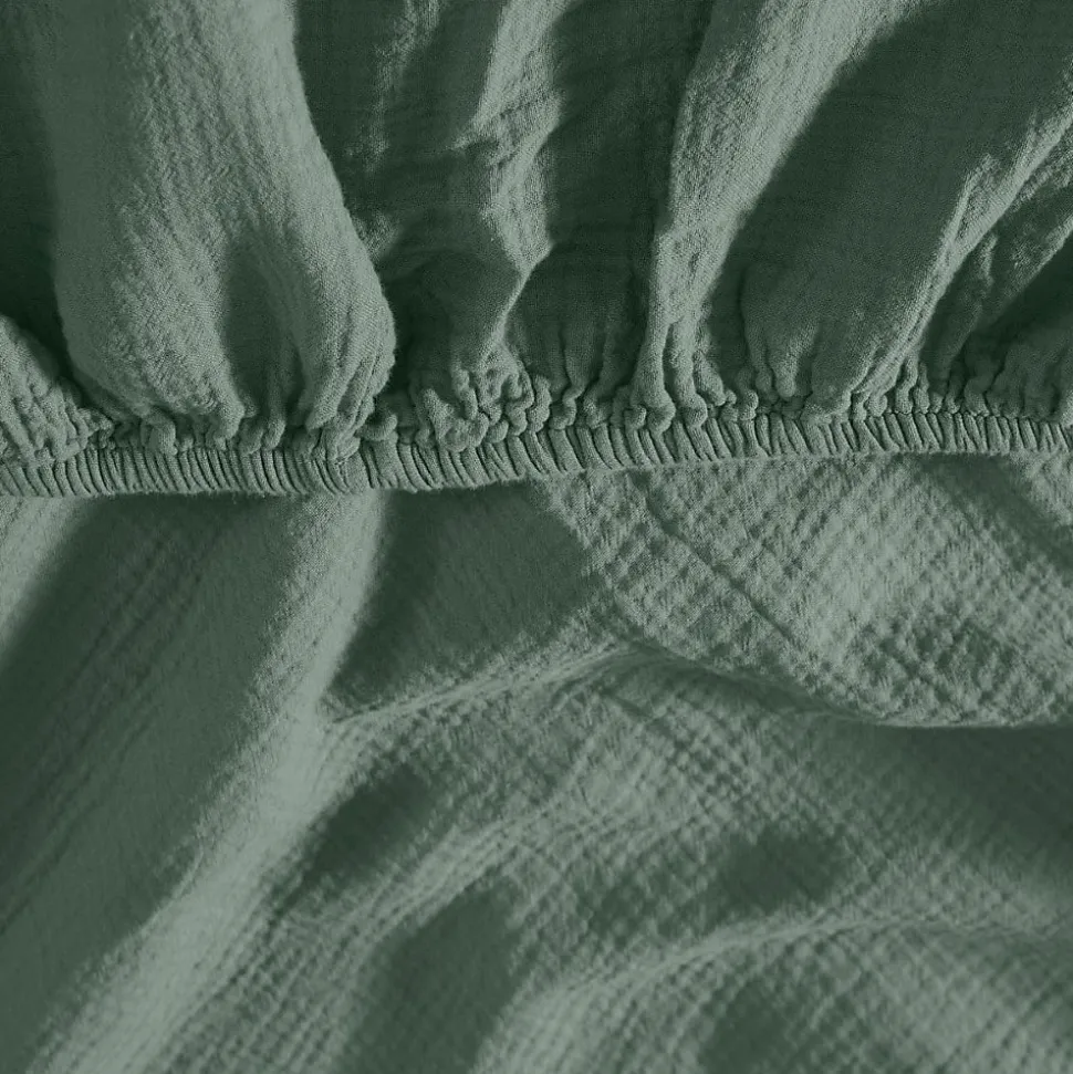 Drap housse en gaze de coton bonnet 30 cm Lichen 90×200 cm LOFT